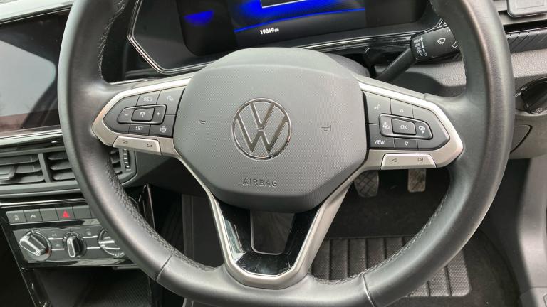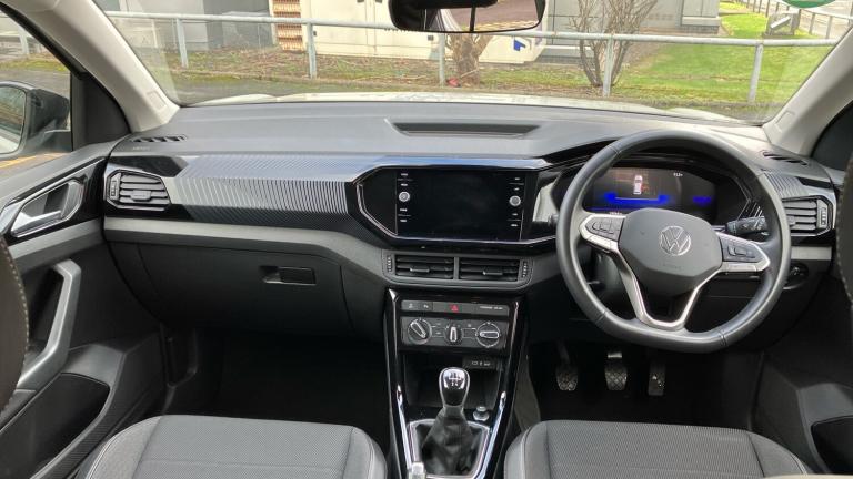 For sale: a striking Volkswagen T-Cross Estate 1.0 TSI Black Edition 5dr, first registered on 29/08/2023 and showing just 19,048 miles. This stylish and versatile compact SUV perfectly blends contemporary design, advanced technology, and impressive practicality, making it an ideal choice for city driving, family life, or weekend adventures.Powered by Volkswagen’s efficient 1.0-litre TSI petrol engine, the T-Cross delivers a smooth and responsive drive with excellent fuel economy of up to 47.9 mpg (combined). Its lightweight design and refined handling make it effortless around town, while the engine’s punchy performance ensures confidence on longer journeys.Inside, the T-Cross Black Edition combines comfort and sophistication with a high-quality interior finished in premium materials and sleek black styling accents. The cabin is designed with practicality in mind, featuring a spacious layout, clever storage solutions, and flexible rear seats that slide and fold to expand boot capacity. Whether it’s the daily commute or a weekend getaway, the T-Cross adapts easily to your needs.Technology takes centre stage with the Volkswagen Digital Cockpit, offering a clear, customisable display of key driving information, and a user-friendly infotainment touchscreen complete with Apple CarPlay and Android Auto for seamless smartphone integration. Safety is built into every element of this car, with advanced driver-assistance systems including Front Assist with City Emergency Braking, Lane Assist, Adaptive Cruise Control, and Blind Spot Monitoring, ensuring every journey is both secure and stress-free.The T-Cross Black Edition stands out with distinctive black alloy wheels, gloss black exterior details, and sharp LED lighting, giving it a confident and contemporary road presence.Buying from Vertu Nissan Glasgow Central offers complete peace of mind, with all vehicles prepared by manufacturer-trained technicians. This outstanding T-Cross is available now for test drive and immediate delivery, ready to drive away today..Front + rear carpet mats, Heated rear window, Front and rear electric windows, Windscreen wipers/ intermittent wipe + 4 position delay, Rear windscreen washer and wiper with interval delay, Rear tinted glass 65% approx light absorbing from B pillar backwards, Low washer fluid warning light, Hill start assist, Automatic post collision braking system, Front disc brakes and rear drum brakes, Volkswagen roadside assistance, ESC with EDL, ASR, EDTC and trailer stabilisation function, Anti-lock Braking System (ABS) with Hydraulic Brake Assist (HBA), Bluetooth telephone and audio connection for compatible devices, We Connect Go Dongle, Wireless Car net app connect with Apple CarPlay, combined functionality of Apple CarPlay/Android Auto and MirrorLink, Lane assist, Blind spot monitoring, Driver alert system, Power assisted speed sensitive steering, Adaptive cruise control including front assist, forward collision warning, autonomous emergency braking, speed limiter