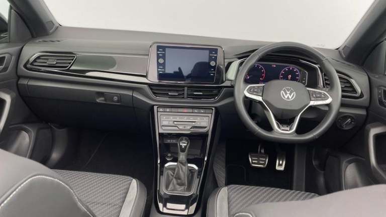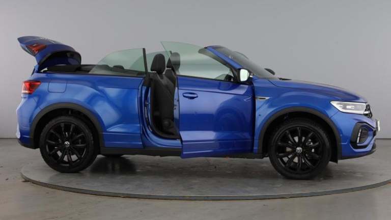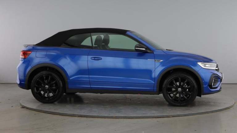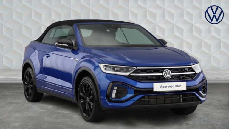 Volkswagen T-Roc 1.5 TSI R-Line Convertible DSG (150 PS) in superb condition, registration DU73AFA, showing just 5,805 miles and fully ULEZ compliant. With one previous owner and full Volkswagen approved service history, it was most recently treated to an oil change service at 2,718 miles, giving you extra peace of mind. The punchy yet efficient 1.5 TSI pairs seamlessly with the smooth DSG automatic and 2WD, while Euro 6 emissions keep running clean and city friendly.R-Line styling gives this open-top T-Roc a confident stance, complemented by 18 alloy wheels. Inside, you ll find satellite navigation to guide every journey, heated front seats and a heated steering wheel for year-round comfort, plus Apple CarPlay and Android Auto for effortless smartphone integration. It s a stylish, practical convertible that s as at home on the seafront as it is on the school run.When you purchase this car from Mon Motors Volkswagen Weston-Super-Mare, you ll enjoy all the benefits of the Volkswagen Approved Used scheme, including a minimum 12-month Warranty and 12 months Roadside Assistance. If the car is under three years old, any remaining balance of Volkswagen s original 36-month manufacturer warranty also applies; where over three years, you are covered by a minimum 12-month warranty. This example has passed over 100 meticulous checks by our Volkswagen technicians and is available for immediate delivery.Buy with confidence from Mon Motors Volkswagen Weston-Super-Mare, an official Volkswagen franchise retailer. You ll benefit from Volkswagen-trained technicians using genuine parts, a comprehensive multi-point inspection with independent history checks, competitive finance options, fair part-exchange valuations and professional handover. Expect friendly expert advice, nationwide support across the Mon Motors network and a hassle-free experience from test drive to collection. Black design pack - T-Roc cabriolet R-Line, Metallic - Ravenna blue, Windscreen wiper with intermittent wipe light, Shock absorption in front, Black roof, Body colour door handles, Body colour rear spoiler, Chrome effect left and right trapezoid exhaust tailpipe fascia surround, Chrome trim on upper and lower radiator grille, Power operated canvas convertible top, R-Line design body coloured bumpers, Rear boot, Volkswagen roundel, Automatic hazard lights activation under emergency braking, Automatic headlight control with LED separate daytime running lights with coming/leaving home function,