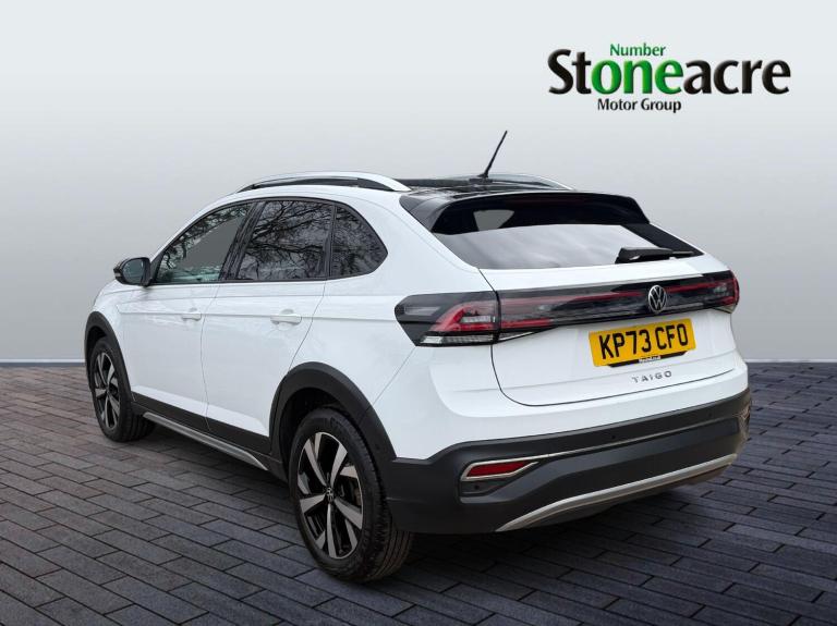 This 2023 Volkswagen Taigo TSI Style is a superb example, having had only one owner since new. This stylish compact SUV coupe, registered in 2023, features a responsive 1.5 litre petrol engine and meets Euro 6 emissions standards. Inside, you'll find the advanced Air Care Climatronic air conditioning system with an active combination filter and two zone temperature control, ensuring a comfortable cabin environment. Stay connected and powered up with wireless charging and Bluetooth connectivity, while the Discover Media Navigation system, compatible with Android Auto and Apple CarPlay, keeps you on track. For enhanced safety and convenience, it includes Travel Assist with Emergency Assist and adaptive cruise control, alongside striking IQ Light LED Matrix headlights.Experience impressive performance with this Taigo, accelerating from 0 to 62 miles per hour in just 8.3 seconds. Its fuel economy is a notable highlight, achieving up to 49 miles per gallon, which indicates a more efficient drive compared to many similar vehicles. Furthermore, its low CO2 emissions demonstrate a commitment to reduced environmental impact. This combination of performance, efficiency, and advanced technology makes the Volkswagen Taigo TSI Style a compelling choice.