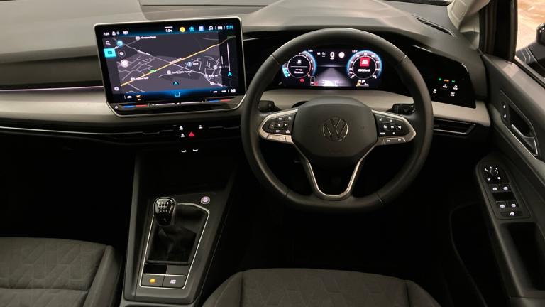 The Volkswagen Golf Hatch Match 1.5 TSI 115PS presents a polished blend of style and practicality. Finished in a striking Grenadilla Black Metallic, it offers a contemporary look that balances elegance with understated sportiness. Its five-door layout enhances accessibility, making it a sensible choice for both city commuting and longer journeys.Under the bonnet, the 1.5-litre TSI engine delivers a smooth and responsive drive, paired with a six-speed manual transmission that gives the driver a connected, engaging experience. The handling remains composed, with confident steering and a suspension setup that manages road imperfections with ease, ensuring comfort without sacrificing agility.Inside, convenience features such as keyless entry and a rear view camera add a modern touch, while the 1-year Approved Used Warranty provides reassurance for buyers. Overall, this Golf Hatch Match combines practicality, style, and dependable performance in a package that remains appealing to a wide range of drivers..Manufacturer Approved, Front and rear electric windows, Rear windscreen washer and wiper with interval delay, Rear tinted glass 65% light absorbing from B pillar backwards, Heat insulating windshield made of laminated glass, ABS, Rear disc brakes, Electronic parking brake with auto hold, ESC (Electronic Stability Control), Volkswagen roadside assistance, Autonomous emergency braking front assist with pedestrian and cyclist monitoring, Wireless app connect, We connect preparation, E-Sim card for online connectivity, Lane assist, Dynamic road sign display, Oncoming vehicle braking when turning including swerve support, Activated carbon canister, Speed limiter, Multifunction front facing camera for distance control, Adaptive cruise control (ACC), Navigation system, Speedo, rev counter, electronic odometer, trip, service interval display, exterior temperature and fuel gauge, eCall emergency call system, We connect plus preparation