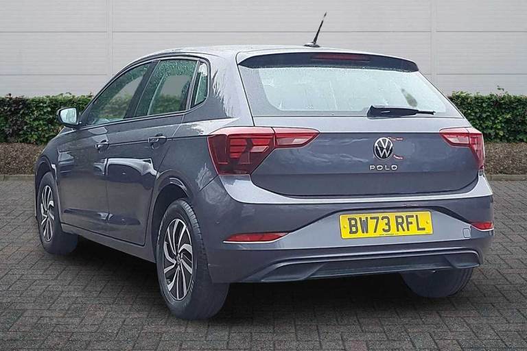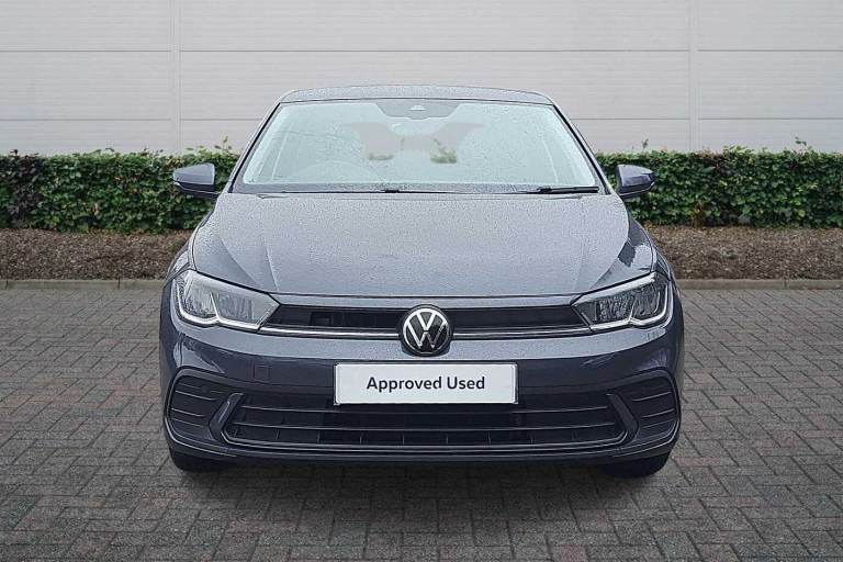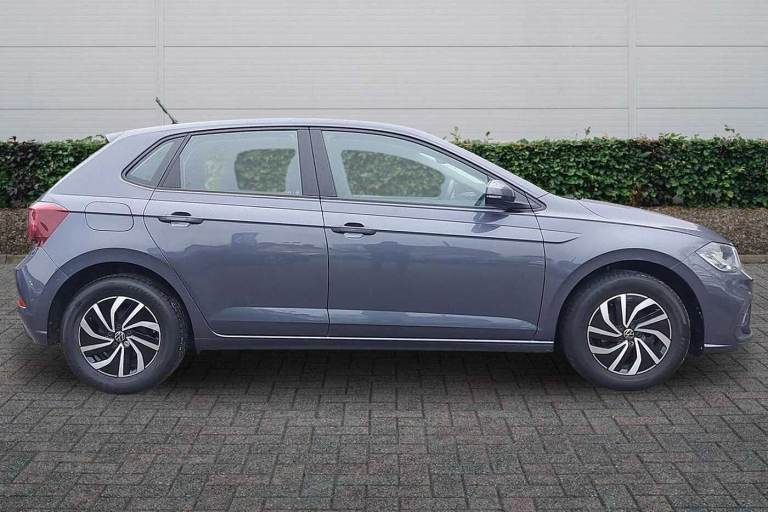 Available from 28/01/2026. Volkswagen Polo Hatchback 1.0 TSI Life 5dr in Smokey Grey Metallic. Specification Includes Safety,Rear view camera,Paint - Metallic,Metallic - Smokey grey,Wheels,15in Essex alloy wheels,Exterior Features,Electric front windows,Heat insulating darkened glass in side and rear windows,Heat insulating glass windscreen,Rain sensor,Rear electric windows,Rear windscreen washer and wiper with interval delay,Front wheel drive,Rear shock absorpion,Body colour bumpers,Body colour door handles,Rear side wing doors,Rear fog light,Third brake light,Safety,ABS,ESC (Electronic stability control) + EDL (Electronic Differntial lock) and ASR (Traction control),Front disc brakes,Hill hold control,Rear drum brakes,Adaptive cruise control without follow-to-stop and speed limiter,Advanced driver attention and drowsiness monitor,Dynamic road sign display,Front assist system,Power assisted speed sensitive steering,Automatic dimming interior rear view mirror,Body colour door mirrors,Power folding adjustable/heated exterior mirrors and front passenger exterior mirror lowering function,3 point height adj front seatbelts + pretensioners,3x3 point rear seatbelts,Driver and front passenger airbag with front passenger airbag deactivation,Drivers and front passengers safety optimised head restraints,Extended and predictive pedestrian/ cyclist protection,Front curtain and side airbags with center airbag,Manual child lock in rear doors,Single tone horn,Tyre pressure loss indicator,Audio / Communications,Bluetooth mobile phone interface,Preparation for We connect and We connect plus,Wireless app connect,DAB Digital radio,Diversity antenna for FM reception,Front and rear 6 speakers,Driver Convenience,Standard rear axle,Travel Assist - Lane keeping system and traffic jam assist,Miscellaneous,Emergency call service,Speedo and rev counter- electronic odometer- trip- service interval display and fuel gauge,Travel assist including emergency assist,Trip computer,Warning signal and warning light for front and rear seatbelts not fastened,Washer fluid level indicator,Start-stop system with battery regeneration (recuperation - energy recovery during braking),Trim,Lava stone black gloss/matt decorative inserts in dash and front door panels,3 rear head restraints,60/40 split folding rear seat and rear seat bench not split,Driver and front passenger seat height adjustment,Front seat backrest storage pockets,Front standard seats,Isofix child seat preparation easy-fit (for two