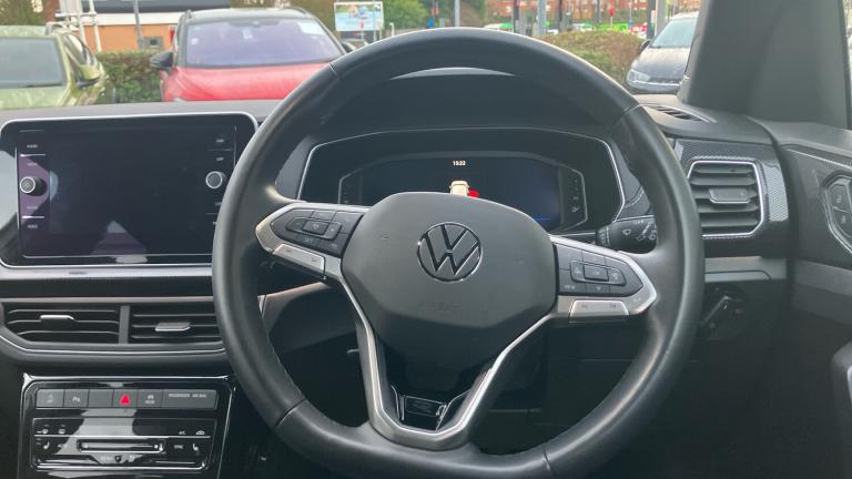 Now available at Vertu Volkswagen Nottingham South, the Volkswagen T-Cross Estate 1.0 TSI 115 R-Line 5dr DSG combines sporty styling, compact SUV practicality, and efficient performance, powered by the responsive 1.0 TSI 115 engine paired with the smooth DSG automatic gearbox for a refined and confident drive. The R-Line trim enhances its athletic character with dynamic exterior detailing, distinctive alloy wheels, and upgraded interior touches that elevate both style and comfort. Inside, the T-Cross features a digital instrument cluster, intuitive touchscreen infotainment system with seamless smartphone connectivity, Adaptive Cruise Control, Lane Assist, LED headlights, front and rear parking sensors, and automatic climate control to make every journey easier and more enjoyable. The vehicle comes with tyres replaced if under 3mm, a minimum of 9 months MOT, no servicing costs for 6 months or 6,000 miles, and includes two keys for added peace of mind. As part of the Volkswagen Approved Used programme, you’ll also benefit from a 12-month Volkswagen warranty, 12 months roadside assistance, a comprehensive multipoint inspection, full history and mileage checks, a 30-day/1,000-mile exchange policy, free 5-day insurance, and access to flexible finance options tailored to your needs..Air Conditioning, Satellite Navigation, Heated Seats, Parking Sensors, Low Mileage, Full Service History, USB, Manufacturer Approved, Diamond Cut Alloy Wheels, Adaptive cruise& Apple-Android Play, Front + rear carpet mats, Rain sensor, Front and rear electric windows, Low washer fluid warning light, Heat insulating darkened glass in side and rear windows, Heat insulating and laminated safety glass windshield, With dynamic road sign display, Rear window wiper with intermittent control, Hill start assist, Automatic post collision braking system, Volkswagen roadside assistance, Anti-lock Braking System (ABS) with Hydraulic Brake Assist (HBA), ESC with EDL and ASR (traction control), Disc brakes in rear, Extended and predictive pedestrian/cyclist protection, Disc brakes in front, Wireless Car net app connect with Apple CarPlay, combined functionality of Apple CarPlay/Android Auto and MirrorLink, Preparation for We connect and We connect plus