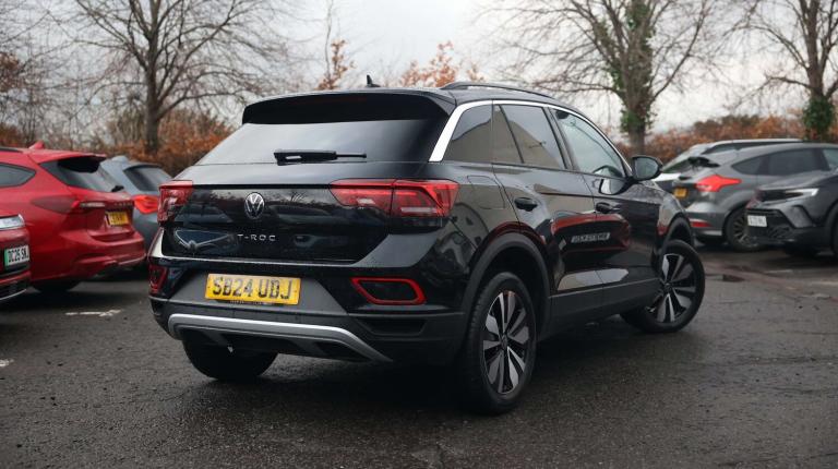 .The Volkswagen T-Roc 1.5 TSI Match 5dr offers a dynamic driving experience wrapped in a versatile and stylish compact SUV. Its 1.5-litre TSI engine delivers responsive performance while maintaining efficiency, perfect for both city streets and longer journeys. Inside, the cabin blends comfort and technology seamlessly. The front comfort sports seats, height-adjustable driver and passenger seats with lumbar support, and front centre armrest make every trip enjoyable. Ambient interior lighting, a Ceramique roof liner, and stylish cloth upholstery give the T-Roc a modern, premium feel. Practical touches like storage compartments in doors, under the drivers seat, and a versatile luggage area with adjustable floor make it ideal for everyday life. Technology is at the forefront with the 10-inch touchscreen, wireless App Connect, DAB radio, SD card slot, USB-C connections, and We Connect/We Connect Plus functionality for navigation, music, and smartphone integration. Driver aids include advanced lane keeping assist, city emergency braking with pedestrian monitoring, adaptive cruise control, dynamic road sign display, and park assist with front/rear sensors and rear camera. Safety is comprehensive, featuring multiple airbags (front, side, curtain), electronic stability control (ESC), hill start assist, tyre pressure monitoring, ISOFIX child seat points, and driver alert monitoring. Exterior features like LED headlights with coming/leaving home function, LED rear lights, privacy glass, black roof rails, and body-coloured mirrors complete the sleek and confident look. The T-Roc Match balances style, safety, and connectivity with agile performance, making it a smart and enjoyable choice for modern driving..Advanced driver attention and drowsiness monitor, Bluetooth mobile phone interface, Dynamic road sign display, Emergency call service, Lane keeping system Lane Assist, Modified key software - reduce switch off time for key status change to Long no motion, Online services, Park assist including front and rear parking sensors, Power assisted speed sensitive steering, Rear view camera, Service interval indicator, Tailgate/trunk lid release from outside, Think blue trainer driver tips and journey analysis, Warning sound and light for front seatbelts unfastened, Wireless app connect, Battery regeneration during braking, Front shock absorption, Rear shock absorption chassis with increased ride height, Start/stop function with battery regeneration, DAB Digital radio,