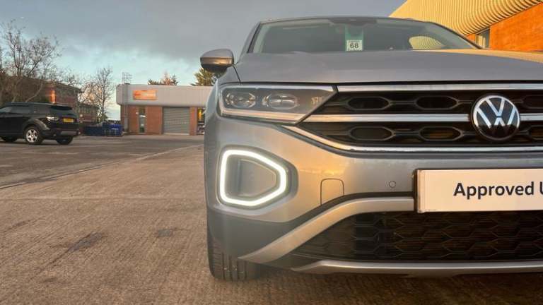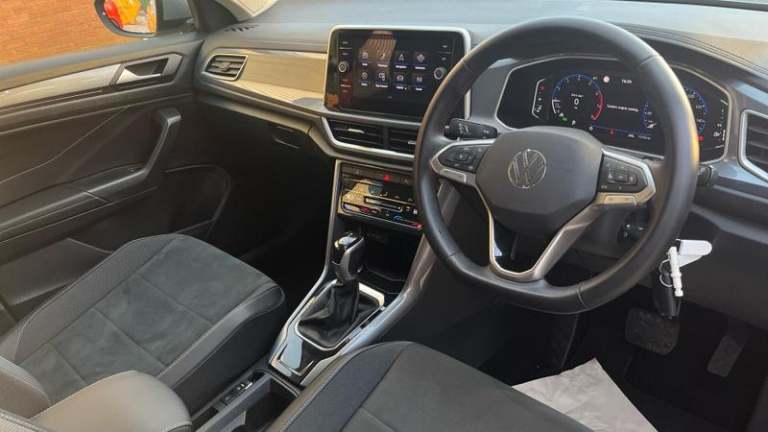 Discover a superb all-rounder in this Volkswagen T-Roc 1.5 TSI Style 5dr DSG (ULEZ), registration GD24UWK, with just 15,434 miles. With one previous owner and a full Volkswagen Approved service history, it s been maintained to the standards you d expect from a quality Volkswagen.The T-Roc Style blends SUV confidence with everyday comfort, and this example is exceptionally well equipped for modern driving. Enjoy satellite navigation for stress-free journeys, adaptive cruise control to take the strain out of longer runs, and rear parking sensors to make manoeuvring simple. Inside, you ll stay seamlessly connected with Bluetooth, plus Apple CarPlay and Android Auto for calls, music, messaging and apps on the move.Buy with complete confidence from Mon Motors Volkswagen Gloucester. This vehicle is supplied under the Volkswagen Approved Used scheme, giving you a minimum 12-month Warranty and 12 months Roadside Assistance. If the car is under three years old, it will also be covered by Volkswagen s original 36-month manufacturer warranty, with the remaining term calculated as 36 months minus the vehicle s age; vehicles over three years come with a minimum 12-month warranty. Our Volkswagen technicians have completed over 100 meticulous checks to ensure it meets Volkswagen Approved Used Standards, and it is available for immediate delivery.As an official Volkswagen franchise retailer, we offer manufacturer-trained technicians, Volkswagen specialist support, tailored finance and part-exchange options, and a professional, transparent buying experience from enquiry to handover. Metallic paint, Front windscreen wiper with intermittent wipe and 4 position delay, Heated rear window, Rear wash/wipe with intermittent wipe setting, Body colour sports bumpers with silver metallic underbody fascia, Extended roof spoiler, External USB type C socket and charging sockets, Rear side wing doors, 3rd brake light, Automatic hazard lights activation under emergency braking, Automatic headlight control with LED separate daytime running lights with coming/leaving home function, Dynamic headlight range control with self adjusting whilst driving, LED rear number plate lights, Light mode for poor weather, rain, fog or snow, ABS, City emergency braking and pedestrian monitoring, Electronic parking brake, Electronic Stability Control (ESC) inc EDL (Electronic Differential Lock) and ASR (Traction Control), Rear disc brakes, Volkswagen roadside assistance, Modified key software -
