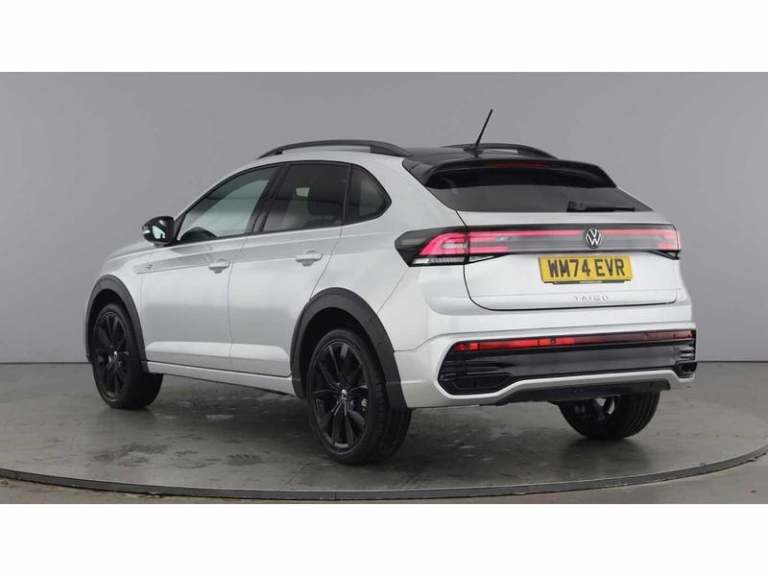 Discover sporty SUV style with this Volkswagen Taigo 1.0 TSI (115ps) R-Line DSG (ULEZ), registration WM74EVR, with just 4,851 miles. Previously our own demonstrator here at Mon Motors, it has had one previous owner and benefits from a full Volkswagen approved service history offering the reassurance of a vehicle that s been maintained to the standards you d expect from an official Volkswagen retailer.The R-Line specification delivers a sharper look and a more dynamic drive, complemented by 18 alloy wheels and a well-equipped cabin. Enjoy confident journeys with satellite navigation, adaptive cruise control and the Light & Sight Pack, while front and rear parking sensors make tight spaces effortless. You ll also stay seamlessly connected thanks to Bluetooth, Apple CarPlay and Android Auto perfect for calls, music and apps on the move.When you purchase from Mon Motors Bath Volkswagen, you ll receive all the benefits of the Volkswagen Approved Used scheme, including a minimum 12-month Warranty and 12 months Roadside Assistance for added peace of mind. If the vehicle is under three years old, it is covered by Volkswagen s original 36-month manufacturer warranty, with the remaining term being 36 months minus the vehicle s age; vehicles over three years come with a minimum 12-month warranty. This Taigo has also passed over 100 meticulous checks completed by our Volkswagen technicians and is available for immediate delivery.Choose Mon Motors Bath Volkswagen and you re buying from an official Volkswagen franchise retailer expert product knowledge, Volkswagen-trained technicians, transparent history, and a customer experience designed to make buying your next car straightforward, secure and genuinely enjoyable. Black roof pack with mirror housing - Taigo, Metallic - Reflex silver, Two tone Metallic/Pearl - Reflex Silver / Black, 18 Misano black alloy wheels with diamond-turned surface, Rear wash/wipe with intermittent wipe setting, External USB type C socket and charging sockets, Rear side wing doors, Ambient lighting with logo projection, Auto headlights, LED rear combination lamp, LED third brake light, Rear fog light on one side, reversing light on both sides, Electronic stability control, Front and rear disc brakes, Adaptive cruise control, Advanced driver attention and drowsiness monitor, Driving profile selection, Dynamic road sign display, Aspherical driver's exterior mirror, Left convex exterior mirror, Power folding adjustable/heated exterior
