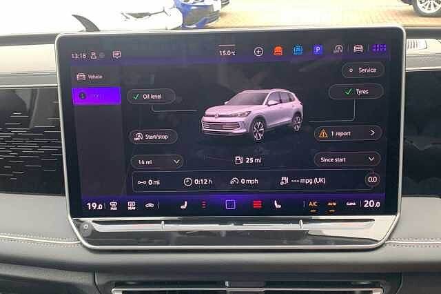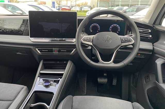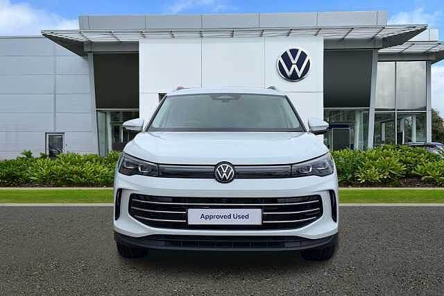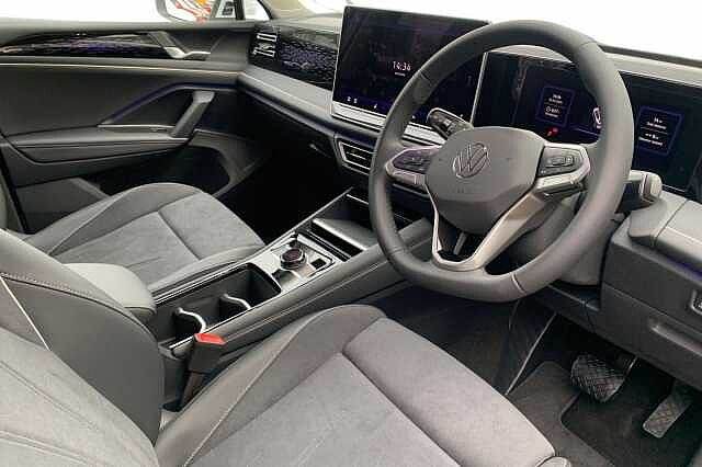 Outside mirror electr., Roof rails, DAB radio, Automatic air-conditioning, Bluetooth, Brake assistant, Central locking, Cruise control, Electric windows, Electronic tailgate, Electronically retractable wing mirror, Heated front seats, Heated steering wheel, Keyless Start, On-board computer, Reversing camera, Aluminium wheels, Active brake assist, Adaptive cruise control, 2x driver and passenger airbags, Emergency call system, Multifunctional steering wheel, Front wheel drive, 5 seats, Ambient lighting, Centre arm rest, Divided back seats, ISOFIX Child seat fastener, Leather, Leather steering wheel, Sport seat, Right-hand drive, Tinted windows, Delivery from 26.06.2024, 5 doors, Heated front window, Speed limit: 130 mph Exterior Features, Special solid paint, IQ.Light - HD matrix headlamps with poor weather light, entry and exit lighting, Interior Features, Art velours cloth upholstery, Trim, Heated front seats, Packs, Infotainment package plus - Tiguan, Paint - Special, Special solid - Pure white, Wheels, 19"" Catania diamond-turned surface Black alloy wheels with Airstop rolling resistance tyres Exterior Features, Front and rear electric windows, Heat insulating glass in side and rear windows, Heated windscreen washer jets, Laminated safety glass from B-pillar backwards 90% tinted, Laminated safety glass windshield, heat and sound insulating, Front wheel drive, Body colored bumpers in R-Line style, Body colour door handles, Chrome moldings on the side windows, Rear side wing doors, Silver roof rails, Ambient lighting with logo projection, Automatic headlight control system, Coming/leaving home lighting function, Dynamic headlight range control with dynamic cornering light, High level 3rd brake light, High-resolution matrix beam plus digital projection, Highway light, Illumiated Lightline between headlamps and illuminated door handle recesses, LED rear lights with welcome farewell lights with illuminated Volkswagen Logo, LED separate daytime running light, Rear fog light on one side, reversing light on both sides, Safety, Autonomous emergency braking front assist with pedestrian and cyclist monitoring, Electronic parking brake with auto hold, Front disc brakes, Rear disc brakes, Adaptive cruise control ACC including speed limiter, Advanced driver attention and drowsiness monitor, Area view camera [PAV], Comfort drive travel assist, Dynamic road sign display, Extended safety system (proactive passenger protection system), Lane change system, Side assist, Rear traffic alert and Exit warning system, Lane keeping system Lane Assist, Multifunction front facing camera, Oncoming vehicle braking when turning including swerve support, Park assistance plus with front and rear parking sensors, Power assisted steering with speed sensitive, Rear view camera, Auto dimming interior rear view mirror, Body coloured door mirrors with integrated indicators, Door mirrors auto-dimming on drivers side, surround lighting and memory feature, Remote electrically foldable door mirrors, puddle lights and reverse activated passenger's door mirror, 3 point seat belt for centre rear seats, 3 Point seat belts in front with pretensioners, 3 point seatbelts in outer rear with ECE label, Driver/Front Passenger airbags, Front passenger airbag deactivation, Two tone horn, Warning triangle, Interior Features, Carpet mats, front and rear, Air Care Climatronic 3 zone automatic climate control with enhanced air filter and controls in the rear, 12V outlet in center console rear and in luggage compartment, 12V socket in centre console, Centre console with illuminated storage compartment with sliding cover and two drinks holders, Door and side trim panel with leatherette insert, Door sill protectors, Front centre armrest, Heated steering wheel, Illuminated door handle recesses, Leather wrapped multifunction steering wheel with paddle shift, Variable luggage compartment floor, 30 colours options interior ambient lighting, Sun visors with illuminated vanity mirrors, Audio / Communications, App-Connect incl. App-Connect Wireless for Apple CarPlay and Android Auto, Bluetooth phone integration system, E-Sim card for online connectivity, eCall emergency call system, Wireless App-Connect, DAB radio, Diversity antenna for FM reception, Driver Convenience, Full electric tailgate operation, Start/stop system with regenerative braking, Miscellaneous, Digital Cockoit Pro - 10.25"" high resolution dash display screen with customisable menus and information, eCall emergency call service, Rev counter, Service interval indicator, Speed limit display, Trip computer, Warning signal and warning light for front and rear seatbelts not fastened, Trim, Chrome elements on the mirror switch and power window switches, door pulls interior door handle in matte chrome, Decorative inserts Cross in dash forn door panels, 3 bench rear seats in 2nd row, 3 rear headrests, Drivers seat with manual adjustment of seat travel and height and backrest angle with thigh