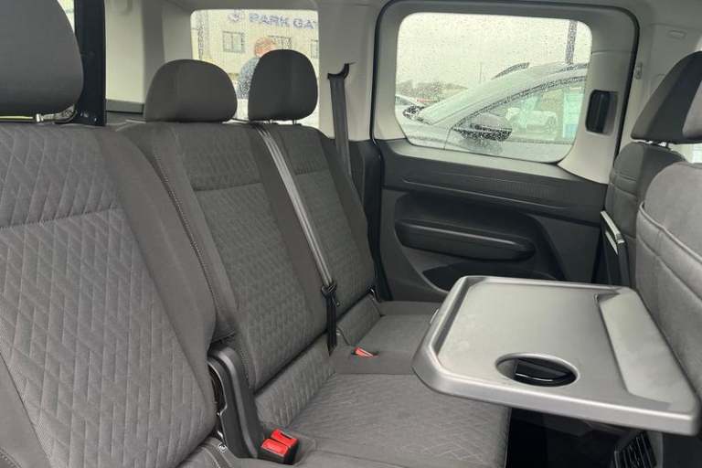 Driver alert system, eCall emergency call system, Gesture control, Lane keeping system, Multi function display, On board computer, Service interval indicator, Start/stop system with regenerative braking, We connect plus preparation, Anti dazzle rear view mirror, Automatic hazard lights activation under emergency braking, Automatic headlight levelling system, Body colour bumpers, Electric front windows, Electrically adjustable and folding door mirrors, Fixed side window in load/passenger compartment, Heat insulating windscreen, Heated door mirrors, Heated rear window, LED rear combination lights, Rear window wiper and washer system with intermittent control, Third high level brake light, Twin near side and off side sliding doors, Windscreen wiper with variable intermittent delay and wash wipe system, 12V socket in passenger compartment, 3 seat bench in 2nd row, 5 standard interior lights in passenger compartment, Backrest release for front passenger seat, Carpet floor covering in cab, Carpet floor covering in passenger compartment, Centre console high with armrests adjustable, Centre console with 2 cupholders, Door and side trim panel in fabric, Electrically controlled heating system, Folding table on front seat backrests, Front head restraints, Front passenger seat foldable, Height adjustable head restraints, Isofix on 2nd row outer seats, Leather gearshift knob/handle, Leather multifunction steering wheel, LED interior light in headlining, Lockable glove compartment with light,