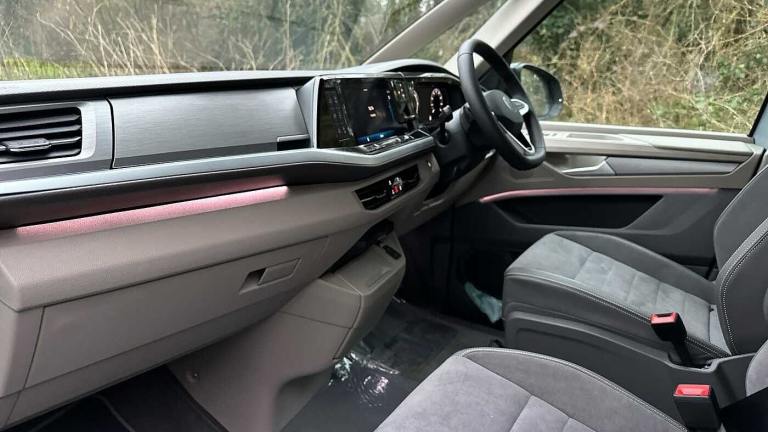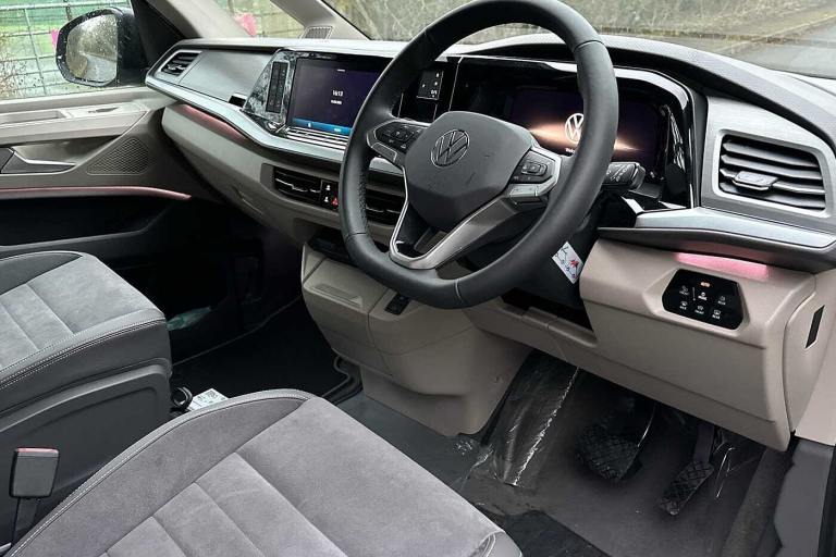 Available from 30/07/2025. Volkswagen California Diesel Estate 2.0 TDI Ocean 5dr DSG in Silver. Specification Includes Paint - Metallic,Metallic - Mono silver,Exterior Features,65% light absorbing privacy glass,Four speed control for windscreen wipers,Front window in laminated safety glass with heat and noise-insulating,Heated windscreen,Sliding window in front with fly screen and fixed window in rear in load passenger at left,Windscreen wiper intermittent control,Standard suspension and shock absorption,A-pillar- D pillar and tailgate,Electro hydraulic elevating roof- with three windows including one front passengers panorama opening- canvas in Basalt Grey,Nameplate set California,Rear boot,Tailgate with electric closing aid,All weather light,Ambient lighting in door area,Dynamic Light Assist for LED matrix headlights,Headlight levelling- dynamic- with dynamic cornering lights,Illuminated molding between headlamps,Red LED tail lights,Safety,Autonomous emergency braking front assist with pedestrian and cyclist monitoring,Front disc brakes,Swerve support and oncoming vehicle braking when turning,Driving profile selection,Lane keeping system Lane Assist,Multifunction camera,PAS,Traffic sign recognition,Turn assist with evasive assistance,High gloss black door mirrors,Advanced driver attention,Driver and front passenger airbags with front passenger airbag deactivation button,Drowsiness detection,First aid kit with warning triangle and safety vest,Height adjustable three point automatic seatbelts at front with belt and end fitting tensioners,Side and curtain airbags for driver and front passenger- curtain airbags for outer seats in rear- centre airbag in front,Three point automatic seatbelts at the rear outside with ECE label- with/without belt tensioner,Tyre pressure loss indicator,Audio / Communications,AppConnect including wireless Apple CarPlay,California on tour app,Mobile phone interface,2 USB-C ports at the front- 4 USB-C charging sockets in the passenger compartment 45W,8 passive speakers,Digital radio reception (DAB+),Driver Convenience,eCall emergency system,Tailgate with window aperture and with power latching,Miscellaneous,Digital cockpit pro,Discover pro navigation with 10in screen,Function control unit,IDA voice assistant and voice enhancer,Online service- with OCU- with head unit coding- without WFS federation,Trim,Dark silver brushed decorative inlays,2 single seats with integrated seatbelt and sleeping mat,Armrest on front swivel seats in