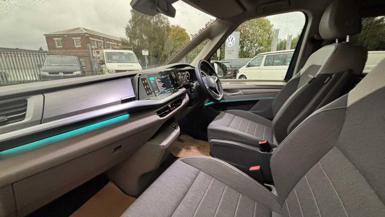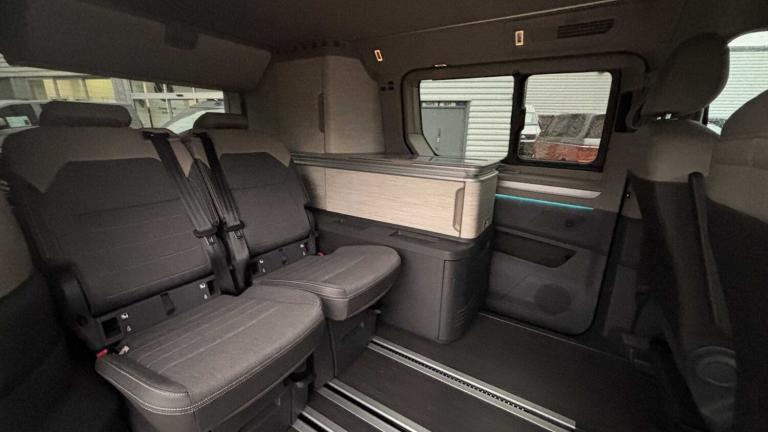 Raven Black / Sand, Candy White/Starlight Blue Metallic, Chrome trims on side and rear,Retractable tow bar, with electric release, Interior lighting on pop-up roof, tailgate & summer kitchen and ambient lighting in roof frame, Sliding window in sliding door - left,Sliding window in sliding door - right, Black awning rail on both sides, Black awning on left side, Electrohydr. operated pop-up roof, with 3 windows and 1 front aperture, canvas in Basalt Grey, Navigation system ""Discover Pro"", Programmable air parking heater and water auxiliary heater with radio remote control, Driving mode selection, Parking package,Park Assist with front and rear parking sensors, Rear view camera, Preparation for ""We Connect"" and ""We Connect Plus"", We Connect preparation, California Ocean, Reinforced plastic floor covering in wood look, 230-V inverter and outlet for UK and India, Chrome trims on side and rear, Gloss black grille with 2 illuminated chrome trim, Ambient interior lighting, Heated leather multifunctional steering wheel with paddles, 230-V inlet with charging feature for vehicle batteries and 230-V outlet in the interior, Keyless Advance,Heated windscreen, UK specification, Information kit in English, Type approval country Great Britain and Northern Ireland, Labels for country group 13, 18"" ""Toshima"" alloy wheels, silver, Lockable wheel bolts, Trims for alloy wheels, 4 alloy wheels ""Toshima"" 7.5J x 18, Silver, 235/50 R18 101 H XL low rolling resistance tyres, Top package, Daytime running light, Climatronic 3-zone air conditioning system, IQ.LIGHT LED Matrix, Breakaway interior rearview mirror, auto-dimming, Advanced high-beam control, Dynamic headlight range control, with cornering light (AFS 1), Front fog lights, LED rear combination lamp with special styling, Illuminated mirrors in sun visors, with airbag label on sunvisor and B-pillar,Rain sensor, Advanced Assistance Package, Car2X ""High"" variant, Adaptive cruise control, Lane change Assist, Travel Assist.