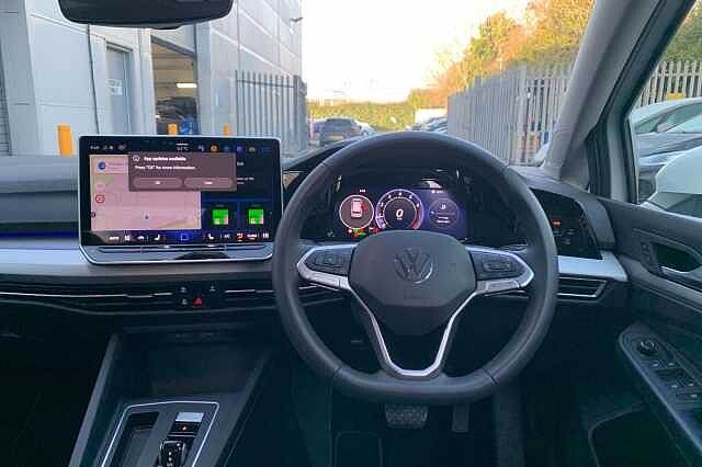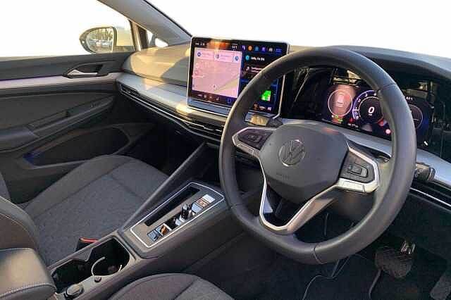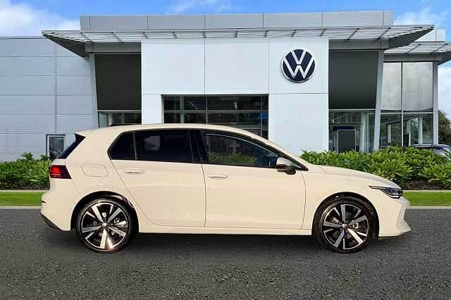 Outside mirror electr., Rear window wiper, Navigation system, DAB radio, Voice control, Air conditioning, Brake assistant, Cruise control, Electric windows, Electronically retractable wing mirror, Hill holder, Aluminium wheels, USB, ABS, Active brake assist, Adaptive cruise control, 2x Front airbags (driver + passenger), Emergency call system, ESP, Differential lock, Front wheel drive, 5 seats, Centre arm rest, Divided back seats, ISOFIX Child seat fastener, Right-hand drive, Tinted windows, Delivery from 30.10.2025, 5 doors, Speed limit: 139 mph Packs, Winter package - Golf DSG Estate/Hatchback, Paint - Special, Special solid - Pure white, Wheels, 18"" Catania alloy wheels in black diamond turned surface Exterior Features, Front and rear electric windows, Heat insulating windshield made of laminated glass, Rear tinted glass 65% light absorbing from B pillar backwards, Rear windscreen washer and wiper with interval delay, Body colour door handles, Rear exhaust tailpipe, Rear side wing doors, Standard bumpers, 3rd brake light, Automatic headlamp activation with Coming home and Leaving home feature, LED separate daytime running light, Rear fog light on one side and reversing lights on both sides, Welcome light with surround lighting, Safety, ABS, Autonomous emergency braking front assist with pedestrian and cyclist monitoring, Electronic parking brake with auto hold, ESC (Electronic Stability Control), Hill start assist, Rear disc brakes, Volkswagen roadside assistance, Activated carbon canister, Adaptive cruise control (ACC), Advanced driver attention and drowsiness monitor, Dynamic road sign display, Multifunction front facing camera for distance control, Oncoming vehicle braking when turning including swerve support, Preparation for light assist system, Speed limiter, Body colour door mirrors, Exterior mirrors convex on the left and aspherical on the right, Remote electrically foldable door mirrors, puddle lights and reverse activated passenger's door mirror, 3 point height adj front seatbelts + pretensioners, 3 rear three point seatbelts, Child locks on rear doors, Driver and front passenger airbag with front passenger airbag deactivation, Extended pedestrian protection measures, Two tone horn, Tyre pressure loss indicator, Audio / Communications, E-Sim card for online connectivity, eCall emergency call system, We connect preparation, Wireless app connect, 2 USB C ports in front, 2 USB charging sockets on the centre console in the rear charging capacity upto 45W, Digital radio reception (DAB), Diversity antenna for FM reception, Gaming platform via car app, Infotainment system with 12.9"" display, Mobile phone interface with inductive charging feature, Miscellaneous, Multi-color Digital cockpit pro, selection of different info profile possible, Navigation system, Speedo, rev counter, electronic odometer, trip, service interval display, exterior temperature and fuel gauge, Voice enhancer and voice control, Warning signal and warning light for front and rear seatbelts not fastened, We connect plus preparation, Hybrid propulsion system, Petrol Particulate Filter, Start-stop system with battery regeneration (recuperation - energy recovery during braking), Trim, Nature cross brushed decorative inserts for dashboard and front door panels, 3 rear head restraints, 3 seat bench in 2nd row, Front head restraints, Front seat lumbar support adjuster, ISOFIX anchors for child seats on outer rear bench seats and on front passanger seat compatible for i-Size, Manual height adjustable front passenger seat, Manually height adjustable driver seat, Single front passenger seat, Split folding backrest with centre armrest and unsplit rear seat bench, Interior Features, 12V socket in front centre console, 12V socket in luggage compartment, Chrome plated radiator grille inserts, air vent surrounds and light switch surrounds, Front centre armrest, Plastic gear knob, Rear cupholder and loadthough, Soul black instrument panel, Standard pedal cluster, Storm grey roof lining, Luggage compartment lighting, XDS electronic differential lock for improved traction and handling, Sun visors with illuminated vanity mirrors, Packs, Technology park and comfort pro package - Golf Hatchback, Security, Anti theft wheel bolts, Preparation for alcohol interlock