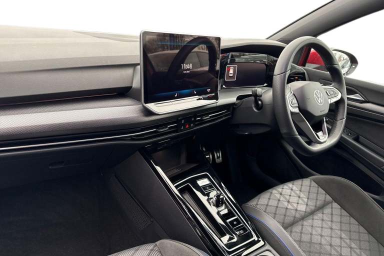 This Volkswagen Golf 1.5 eTSI 150 R-Line combines sharp styling, advanced technology and efficient mild-hybrid performance. Finished in striking Kings Red Metallic premium paint, it stands out beautifully, while the R-Line design adds a sporty, dynamic edge to this iconic hatchback. Inside, the Golf features a refined Anthracite and Titanium Black interior, delivering a modern, driver-focused environment. The Winter Pack enhances comfort with heated front seats and a heated leather-wrapped multifunction sports steering wheel, complete with touch controls and shift paddles for an engaging driving experience all year round. Powered by the smooth and responsive 1.5 eTSI mild-hybrid engine, this Golf offers strong performance with excellent fuel efficiency, ideal for both urban driving and longer motorway journeys. Technology is at the forefront thanks to the Discover Navigation system, showcased on a large 12.9"" infotainment display with built-in navigation, online connectivity via eSIM and high-quality audio through a six-speaker system. The advanced IDA voice assistant with ChatGPT integration allows intuitive, hands-free control of key vehicle functions. Safety and driver assistance are equally impressive. Equipped with Adaptive Cruise Control, Front Assist with Autonomous Emergency Braking, pedestrian and cyclist monitoring, as well as the Light & Sight Pack with rain-sensing wipers and an auto-dimming rear-view mirror, this Golf is designed to make every journey safer a...
