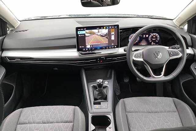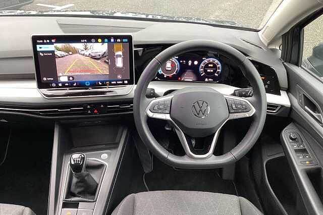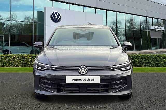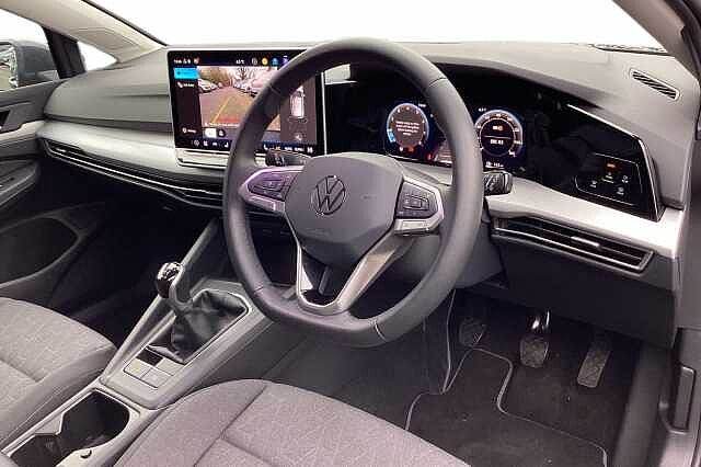 Outside mirror electr., Rear window wiper, Navigation system, DAB radio, Voice control, Air conditioning, Brake assistant, Cruise control, Electric windows, Electronically retractable wing mirror, USB, ABS, Active brake assist, Adaptive cruise control, 2x Front airbags (driver + passenger), Emergency call system, ESP, Differential lock, Front wheel drive, 5 seats, Centre arm rest, Divided back seats, ISOFIX Child seat fastener, Right-hand drive, Tinted windows, Delivery from 16.02.2026, 5 doors, Speed limit: 139 mph Packs, Winter package - Golf Hatchback Exterior Features, Front and rear electric windows, Heat insulating windshield made of laminated glass, Rear tinted glass 65% light absorbing from B pillar backwards, Rear windscreen washer and wiper with interval delay, Body colour door handles, Rear exhaust tailpipe, Rear side wing doors, Standard bumpers, 3rd brake light, Automatic headlamp activation with Coming home and Leaving home feature, LED separate daytime running light, Rear fog light on one side and reversing lights on both sides, Welcome light with surround lighting, Safety, ABS, Autonomous emergency braking front assist with pedestrian and cyclist monitoring, Electronic parking brake with auto hold, ESC (Electronic Stability Control), Rear disc brakes, Volkswagen roadside assistance, Activated carbon canister, Adaptive cruise control (ACC), Advanced driver attention and drowsiness monitor, Dynamic road sign display, Multifunction front facing camera for distance control, Oncoming vehicle braking when turning including swerve support, Speed limiter, Body colour door mirrors, Exterior mirrors convex on the left and aspherical on the right, Remote electrically foldable door mirrors, puddle lights and reverse activated passenger's door mirror, 3 point height adj front seatbelts + pretensioners, 3 rear three point seatbelts, Child locks on rear doors, Driver and front passenger airbag with front passenger airbag deactivation, Extended pedestrian protection measures, Two tone horn, Tyre pressure loss indicator, Audio / Communications, E-Sim card for online connectivity, eCall emergency call system, We connect preparation, Wireless app connect, 2 USB C ports in front, 2 USB charging sockets on the centre console in the rear charging capacity upto 45W, Digital radio reception (DAB), Diversity antenna for FM reception, Gaming platform via car app, Infotainment system with 12.9"" display, Mobile phone interface with inductive charging feature, Miscellaneous, Multi-color Digital cockpit pro, selection of different info profile possible, Navigation system, Speedo, rev counter, electronic odometer, trip, service interval display, exterior temperature and fuel gauge, Voice enhancer and voice control, Warning signal and warning light for front and rear seatbelts not fastened, We connect plus preparation, Petrol Particulate Filter, Start-stop system with battery regeneration (recuperation - energy recovery during braking), Trim, Nature cross brushed decorative inserts for dashboard and front door panels, 3 rear head restraints, 3 seat bench in 2nd row, Front head restraints, ISOFIX anchors for child seats on outer rear bench seats and on front passanger seat compatible for i-Size, Manual height adjustable front passenger seat, Single front passenger seat, Split folding backrest with centre armrest and unsplit rear seat bench, Interior Features, 12V socket in front centre console, 12V socket in luggage compartment, Chrome plated radiator grille inserts, air vent surrounds and light switch surrounds, Front centre armrest, Leather gearshift handle, Rear cupholder and loadthough, Soul black instrument panel, Standard pedal cluster, Storm grey roof lining, Luggage compartment lighting, XDS electronic differential lock for improved traction and handling, Sun visors with illuminated vanity mirrors, Packs, Parking and comfort pack - Golf Estate/Hatchback, Security, Anti theft wheel bolts, Preparation for alcohol interlock