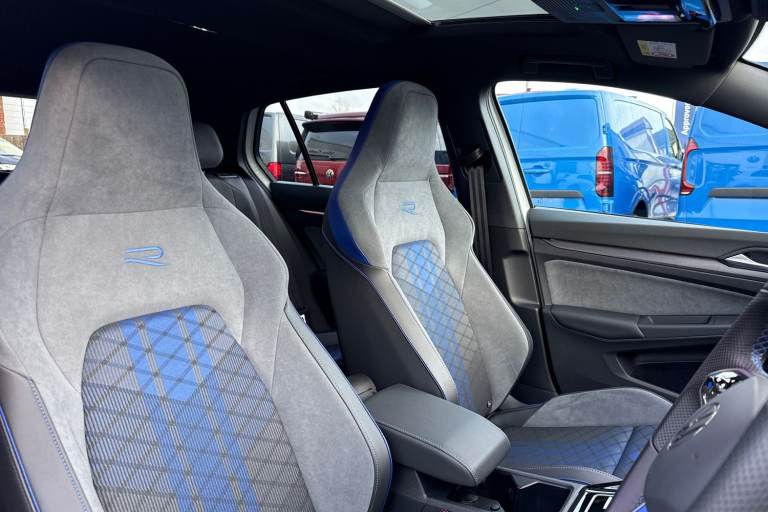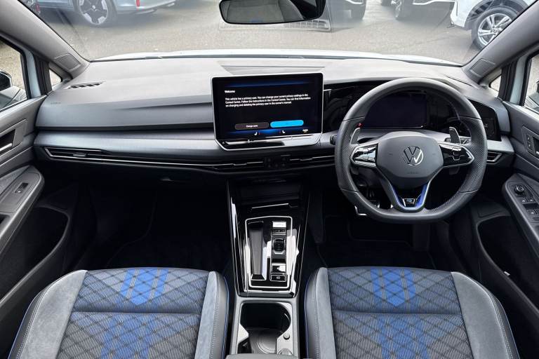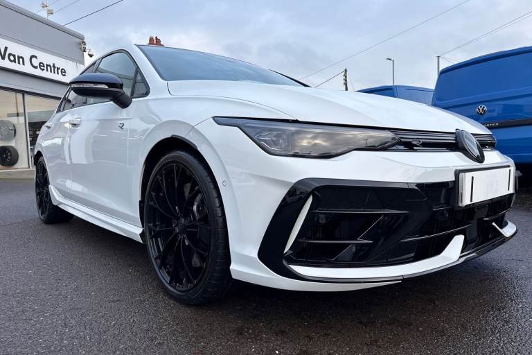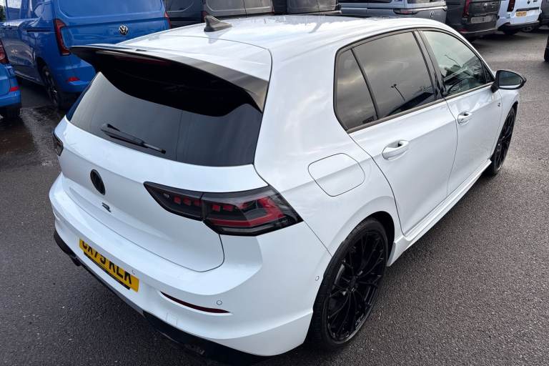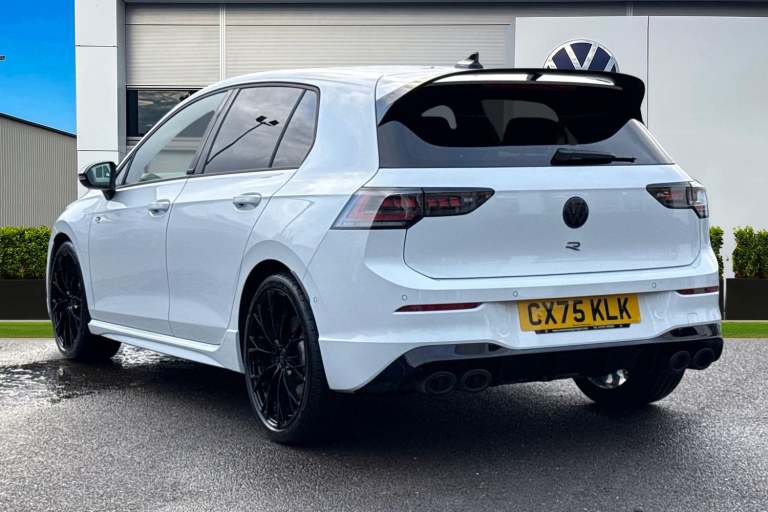 Presenting this stunning Volkswagen Golf R Black Edition that is available to purchase at Wrexham Volkswagen. This Golf is powered by a nifty 2.0 TSI 333PS engine with automatic transmission, 4Motion all wheel drive and dynamic chassis control. The exterior, which is finished in the Pure White paintwork, has a range of features on offer. To the front of the car youll find the Matrix LED headlights that keep the roads well lit, and to the side the rear tinted windows for passenger privacy and the 19in Warmenau alloy wheels. For added convenience this Golf also features keyless access and parking sensors that assist with maneuvering alongside the rear view camera. Moving inside, the sporty cloth seating ensures comfort on every journey. The rear seating area features a folding armrest with cupholders, vent controls and USB ports. Occupants can enjoy the openable panoramic sunroof which is perfect in the warmer climates. The cabin features a pair of heated sports seats, wireless smartphone charger and USB ports, various storage compartments, multifunction steering wheel and touchscreen display. From this display you can access the climate controls alongside features such as navigation, FM/DAB radio, bluetooth connectivity for hands-free phone use and media streaming, and Apple Carplay/AndroidAuto. For more information regarding our flexible finance options or a personalised video, contact our sales team now. This car comes fully prepared to the Volkswagen Approved Used prog...