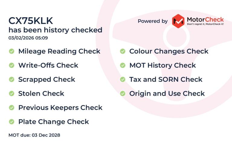 Our vehicle history check is provided for guidance only. Please check all the details with the seller before purchasing