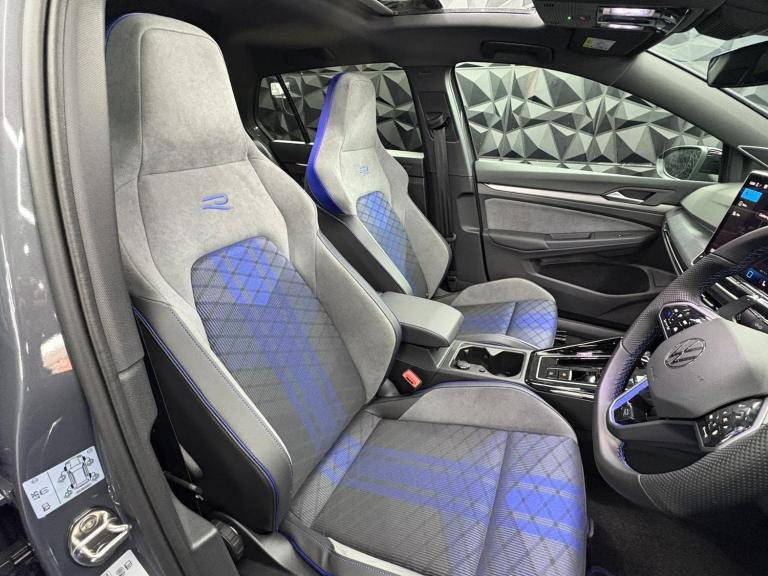This Volkswagen Golf TSI R Black Edition, registered in 2025, boasts a single owner from new, offering excellent provenance. This striking R Black Edition model is powered by a potent 2.0 litre petrol engine, delivering exhilarating performance through its four wheel drive system. It meets Euro 6 emission standards, ensuring efficiency. Notable features include a rear view camera with parking assistance, a mobile phone interface with wireless inductive charging, and heated front seats for added comfort. The advanced Air Care Climatronic 3 zone system with rear air conditioning control ensures a pleasant cabin environment, while the Matrix LED headlights with automatic control provide superior visibility in all conditions.The Golf TSI R Black Edition offers a truly engaging driving experience, highlighted by its impressive 0-62mph acceleration in just 4.6 seconds, demonstrating its superior performance compared to similar vehicles. This capability is complemented by a large boot space, making it a practical choice for everyday use and longer journeys. The combination of its dynamic performance, advanced technology, and thoughtful design makes this a compelling option for those seeking a premium hatchback.