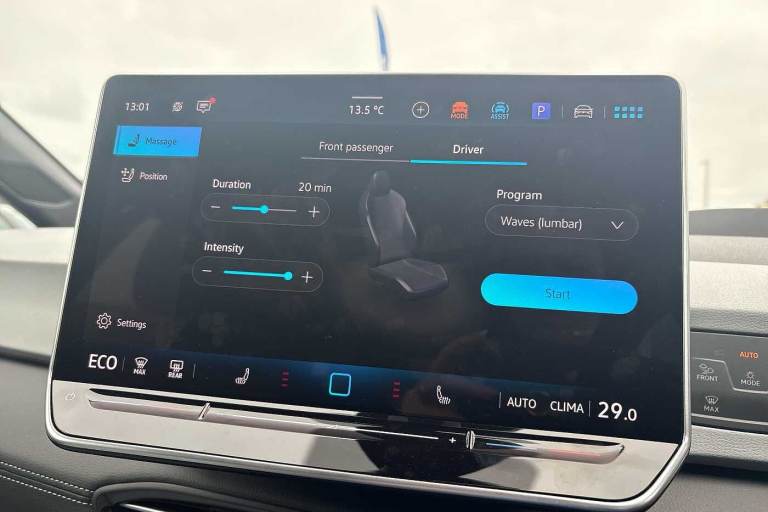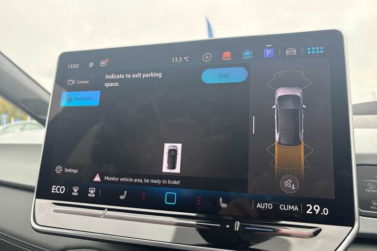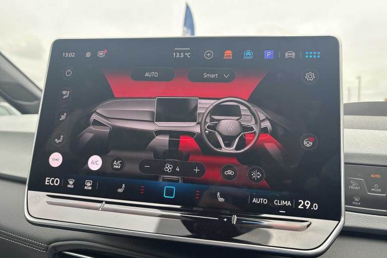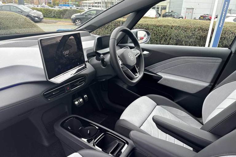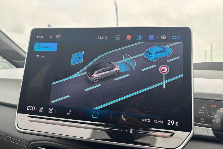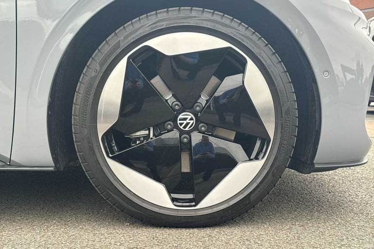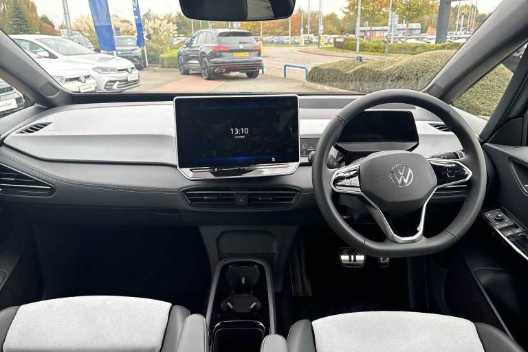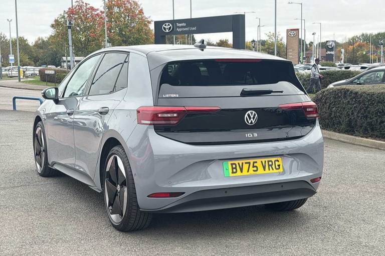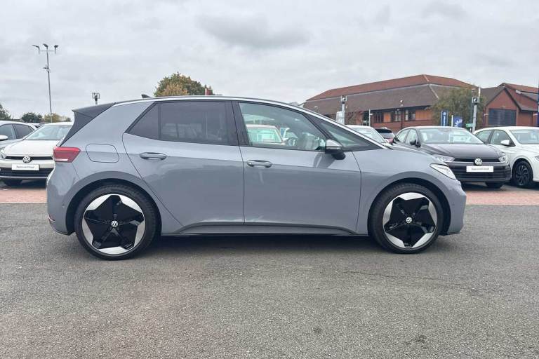 Available from 31/12/2025. Volkswagen ID.3 Hatchback 150kW Match Pro S 79kWh 5dr Auto (5 Seats) in Moonstone Grey. Specification Includes Paint - Solid,Solid - Moonstone grey/Solid black roof,Trim - Cloth,Taia cloth - Grey melange,Exterior Features,Automatically front heated washer nozzles,Front and rear electric windows,Heat insulating windscreen,Heated windscreen washer jets,Rain sensor,Rear tinted glass from B-pillar backwards approx 65% tinted,Rear wiper,Variable front intermittent wipers,Body colour door handles,Body coloured bumpers,Rear side wing doors,Advanced dynamic light assist for LED matrix headlights,Automatic headlights,LED 3rd brake lamp,Separate LED daytime running lights which also perform the indicator function,Welcome light,Safety,Anti-lock braking system (ABS),Autonomous emergency braking front assist with pedestrian and cyclist monitoring,Disc brakes in front,Electronic parking brake with auto hold,Electronic Stability Programme (ESP),Traction control with on/off button,Adaptive cruise control,Advanced driver attention and drowsiness monitor,Dynamic road sign display,Lane assist,Oncoming vehicle braking when turning including swerve support,Predictive speed limiter,Auto dimming rear view mirror,Remote electrically foldable door mirrors- puddle lights and reverse activated passenger's door mirror,3 rear 3 point seatbelts,Centre airbag,Child locks on rear doors,Driver and front passenger airbags,Front and rear curtain airbags,Front passenger airbag deactivation,Front side airbags,Single tone horn,Tyre pressure loss indicator,Audio / Communications,Bluetooth connectivity,Car2X intelligent vehicle networking,E-call,E-Sim card for online connectivity,Natural voice control,Wireless app connect,Wireless Smartphone charger,2 USB C ports in front- 2 USB charging sockets on the centre console in the rear charging capacity upto 45W,DAB Digital radio,Front speakers,Gaming platform via car app,Miscellaneous,Discover pro navigation with 12.9in screen,Preparation for navigation system with media and internet package,Trip computer,Warning signal and warning light for front and rear seatbelts not fastened,Battery 320 A (49 Ah),Standard electronic engine sound actuator,Interior Features,Air Care climatronic 2 zone air conditioning,Electric auxiliary air heater,Centre console with illuminated storage compartment with sliding cover and two drinks holders,Front armrests,Leather wrapped multifunction heated steering wheel with touch control,Play and Pause