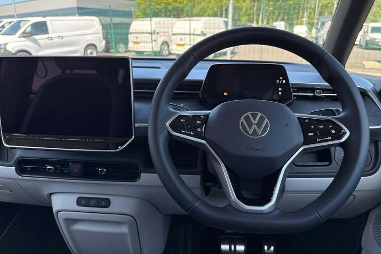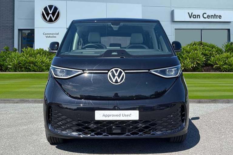 The Volkswagen ID. Buzz Style, finished in elegant Deep Black Pearl, is powered by an 86 kWh battery with an automatic transmission, it offers an impressive range of up to 280 miles*, costing around 10p per mile to run. With an 11 kW AC onboard charger and both Mode 2 and Mode 3 Type 2 charging cables included, recharging is convenient whether youre at home or on the move. *Range depicts brand new model. Current maximum range may differ in line with battery depreciation. Enhancing its sleek, modern exterior are the 20-inch Solna bi-colour alloy wheels and gloss black heated, power-adjustable, and folding mirrors. The IQ.Light LED Matrix headlamps with automatic control ensure exceptional illumination, while the full 360° camera system, with cameras positioned on the front, rear, and both side mirrors, provides complete visibility for effortless manoeuvring and parking. Accessing the cabin is seamless thanks to power-latching sliding doors and a power-operated tailgate with easy open and close functionality. Inside, the clever Multiflex board allows the creation of a flat load surface when the rear seats are folded, adding to the vehicles versatility. The seven-seat configuration makes the ID. Buzz ideal for both family adventures and executive travel, with flexible seating options to expand luggage space as needed. Heated front seats, a heated leather-wrapped multi-function steering wheel with touch controls, and adaptive cruise control with stop-and-go functionality e...