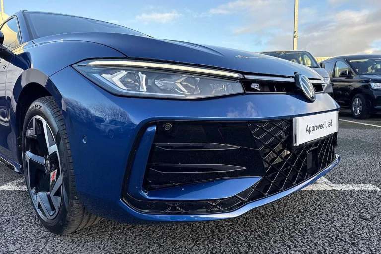 Take a look at this Volkswagen Passat R-Line that is available to purchase at Wrexham Volkswagen. This Passat is powered by a 1.5 TSI eHybrid engine that produces 204PS with automatic transmission. The exterior is finished in the Reef Blue paintwork, which is complimented by the 18in Coventry alloy wheels to the side. The R-Line trim comes with a range of features as standard such as the IQ.LIGHT LED Matrix headlights that keep the roads well lit, keyless entry and electric tailgate for convenient accessibility, tinted windows for passenger privacy, and parking sensors that assist with maneuvering alongside the rear view camera. Inside, the stylish cloth upholstery guarantees comfort on every journey. The rear seating area features a folding armrest with cupholders, vent controls and USB ports. The cabin features a pair of heated seats with massage function, various storage compartments, wireless smartphone charger, multifunction steering wheel, and touchscreen display. From this display you can access the climate controls alongside features such as navigation, FM/DAB radio, bluetooth connectivity for hands-free phone use and media streaming, and Apple Carplay/AndroidAuto. For more information regarding our flexible finance options or a personalised video, contact our sales team now. This car comes fully prepared to the Volkswagen Approved Used programme, with over £2,000 of additional customer benefits including minimum 12 months Warranty or remaining Manufacturers War...