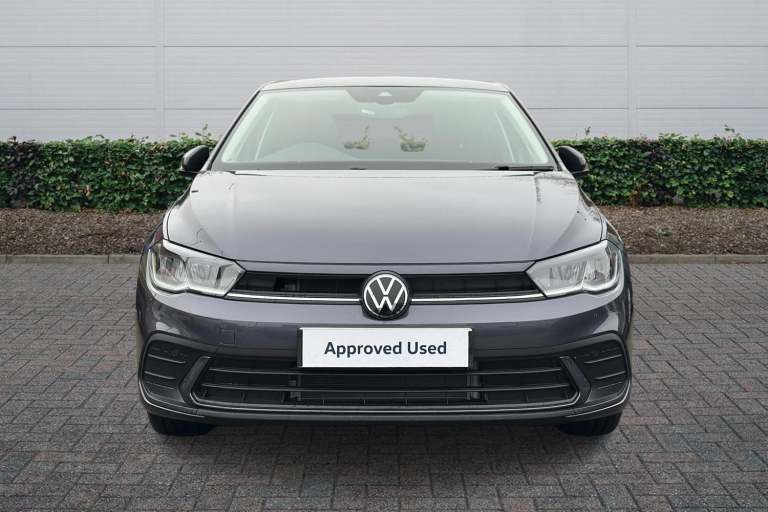 Available from 08/04/2026. Volkswagen Polo Hatchback 1.0 TSI Match 5dr in Smokey Grey. Specification Includes Exterior Features,Electric front windows,Heat insulating and laminated safety glass windshield,Rain sensor,Rear electric windows,Rear tinted glass from B-pillar backwards approx 65% tinted,Rear windscreen washer and wiper with interval delay,Front wheel drive,Rear shock absorpion,Body colour bumpers with chrome inserts,Body colour door handles,Engine badge deletion,Rear side wing doors,Automatic headlight control with LED separate daytime running lights with coming/leaving home function,Headlight range adjustment,LED Headlights,LED rear combination lamps,Rear fog light,Third brake light,Safety,ABS,ESC (Electronic stability control) + EDL (Electronic Differntial lock) and ASR (Traction control),Front assist with autonomous emergency braking (for Adaptive Cruise Control ACC up to 130 mph),Front disc brakes,Hill hold control,Rear drum brakes,Adaptive cruise control without follow-to-stop and speed limiter,Advanced driver attention and drowsiness monitor,Dynamic road sign display,Multifunction front facing camera for distance control,Power assisted speed sensitive steering,Rear view camera,Automatic dimming interior rear view mirror,Body colour door mirrors,Power folding adjustable/heated exterior mirrors and front passenger exterior mirror lowering function,3 point height adj front seatbelts + pretensioners,3 point seat belt for centre rear seat,3 point seatbelts- outer rear with ECE lable,Driver and front passenger airbag with front passenger airbag deactivation,Drivers and front passengers safety optimised head restraints,Extended and predictive pedestrian/ cyclist protection,Front curtain and side airbags with center airbag,Manual child lock in rear doors,Single tone horn,Tyre pressure loss indicator,Audio / Communications,Bluetooth mobile phone interface,Preparation for We connect and We connect plus,Wireless app connect,DAB Digital radio,Diversity antenna for FM reception,Driver Convenience,Standard rear axle,Travel Assist - Lane keeping system and traffic jam assist,Miscellaneous,Emergency call service,Preparation for navigation system with media and internet package,Speedo and rev counter- electronic odometer- trip- service interval display and exterior temperature gauge,Travel assist including emergency assist,Trip computer,Warning signal and warning light for front and rear seatbelts not fastened,Washer fluid level indicator,Start-stop