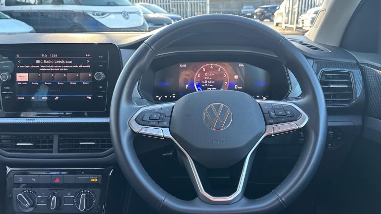 We are pleased to offer this Volkswagen T-Cross 1.0 TSI 115 Match 5dr DSG Petrol Estate, first registered in January 2025 with just 4,451 miles.Powered by a 1.0-litre TSI petrol engine producing 115PS and paired with a smooth DSG automatic gearbox, this T-Cross delivers a refined, economical drive that's perfectly suited to both town use and longer journeys.The Match specification offers a strong level of equipment, including alloy wheels, LED daytime running lights and a smart, modern exterior. Inside, the cabin is practical and comfortable, featuring a touchscreen infotainment system with Bluetooth connectivity, Apple CarPlay and Android Auto, digital driver display and air conditioning, making every journey straightforward and enjoyable.Safety and driver assistance features include lane assist, parking sensors, multiple airbags and electronic stability control, providing confidence and reassurance on the road.Available now from Vertu Volkswagen Huddersfield, conveniently located just minutes from M62 Junction 25, this Volkswagen T-Cross is supplied with a minimum 12-month approved warranty, offering added peace of mind with your purchase..Rain sensor, Front and rear electric windows, Low washer fluid warning light, Heat insulating darkened glass in side and rear windows, Heat insulating and laminated safety glass windshield, Rear window wiper with intermittent control, Hill start assist, Automatic post collision braking system, Volkswagen roadside assistance, Anti-lock Braking System (ABS) with Hydraulic Brake Assist (HBA), ESC with EDL and ASR (traction control), Disc brakes in front, Drum brakes in rear, Extended and predictive pedestrian/cyclist protection, Wireless Car net app connect with Apple CarPlay, combined functionality of Apple CarPlay/Android Auto and MirrorLink, Preparation for We connect and We connect plus, E-Sim card for online connectivity, Rear view camera, Front and rear parking sensors, Dynamic road sign display, Semi-automated driving assistance, travel assist including lane keeping system Lane Assist and emergency assisst, Power assisted steering