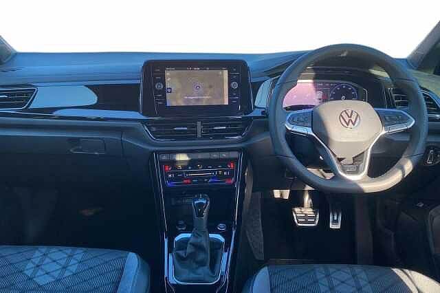 Outside mirror electr., DAB radio, Air conditioning, LED daytime running lights, Electric windows, Electronically retractable wing mirror, Heated wing mirror, Hill holder, Park assistance front, Parking assist system: passive, Rain sensor, Reversing camera, Aluminium wheels, USB, ABS, Active brake assist, 2x Front airbags (driver + passenger), ESP, Multifunctional steering wheel, Park Distance Control, Differential lock, Front wheel drive, Traction control, 5 seats, Ambient lighting, Centre arm rest, Divided back seats, ISOFIX Child seat fastener, Leather, Leather steering wheel, Sport seat, Right-hand drive, Delivery from 30.12.2025, 5 doors, Heated front window, Speed limit: 129 mph Safety, Rear view camera, Packs, Easy open package with safelock - T-Roc Exterior Features, Front windscreen wiper with intermittent wipe and 4 position delay, Heated rear window, Power windows with comfort operation and circuit breaker, Rain sensor, Rear wash/wipe with intermittent wipe setting, Rear shock absorption chassis with increased ride height, Extended roof spoiler, External USB type C socket and charging sockets, Illuminated front grille, R-Line design body coloured bumpers, Rear exhaust tailpipe, Rear side wing doors, Automatic hazard lights activation under emergency braking, Automatic headlight control with LED separate daytime running lights with coming/leaving home function, Dynamic cornering light, IQ LED matrix headlights, LED 3rd brake light, LED rear number plate lights, LED rear tail lights with dynamic turn signal, Light mode for poor weather, rain, fog or snow, Rear fog light on one side and reversing lights on both sides, Safety, ABS, City emergency braking and pedestrian monitoring, Electronic parking brake, Electronic Stability Control (ESC) inc EDL (Electronic Differential Lock) and ASR (Traction Control), Front disc brakes, Hill start assist, Rear disc brakes, Volkswagen roadside assistance, Advanced driver attention and drowsiness monitor, Lane keeping system Lane Assist, Modified key software - reduce switch off time for key status change to Long no motion, Park assist including front and rear parking sensors, Power assisted speed sensitive steering, Auto dimming interior rear view mirror, Electrically adjustable and heated door mirrors, Exterior mirrors aspherical on driver side, convex on front passenger side, Remote electrically foldable door mirrors, puddle lights and reverse activated passenger's door mirror, 3 point height adj front seatbelts + pretensioners, 3 point seatbelts in outer rear with ECE label, Child locks on rear doors, Driver and front passenger airbag with front passenger airbag deactivation, Driver and front passenger safety-optimised head restraints, Drivers seatbelt reminder, Front and rear passengers curtain airbag system including front side airbags, Predictive pedestrian protection, Two tone horn, Tyre pressure loss indicator, Interior Features, Front + rear carpet mats, Air care climatronic air conditoning system with active combination filter and 2-zone temperature control, 12V power socket in centre console, 4 load lashing points in luggage compartment, Artvelours cloth upholstery, Black roof lining, Chrome plated radiator grille inserts, air vent surrounds and light switch surrounds, Door and side trim panel with leatherette insert, Drawer under drivers seat, Front centre armrest, Front cupholders x 2, Front scuff plates with R Line logo, Glove compartment door with light, Leather gearshift handle, Leather wrapped multifunction steering wheel with paddle shift, Load-through provision with cup holder when folded down ('Unsplit rear seat bench, split folding backrest, with centre armrest), Stainless steel pedals, Storage compartment in left and right luggage area, Storage compartment in rear doors, Storage compartments in driver and front passenger doors, Variable boot floor, height adjustable and removable, Front footwell illumination, Front reading light, Instrument lighting, white adjustable panel illumination, Interior ambient lighting and surround lighting, Interior light delay, Luggage compartment lighting, Sunvisors with illuminated vanity mirrors, Audio / Communications, Mobile phone interface, Online services, Wireless app connect, DAB Digital radio, Diversity antenna for FM reception, Front and rear 6 speakers, Music playback - MP3, WMA and AAC files, Premium USB cable in choice of either Apple or Android smartphone compatibility, SD card slot, Simultaneous pairing of 2 compatible mobile devices, Title and cover art display, We Connect and We Connect Plus functionality, Driver Convenience, Tailgate/trunk lid release from outside, Miscellaneous, 10.25"" Digital cockpit pro, Emergency call service, Service interval indicator, Think blue trainer driver tips and journey analysis, Warning sound and light for front seatbelts unfastened, Battery regeneration during braking, Start/stop function with battery regeneration, Packs, Winter pack without