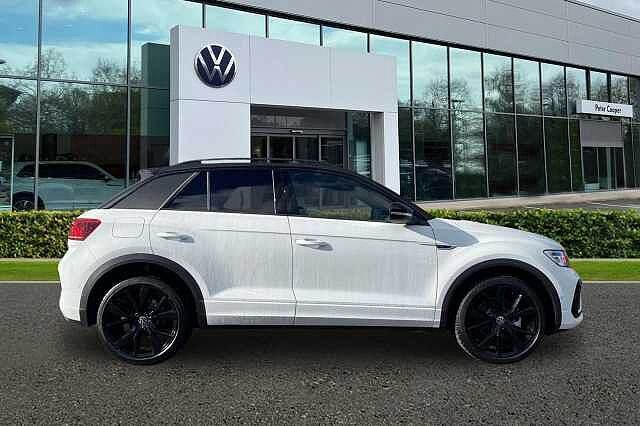 Outside mirror electr., DAB radio, Air conditioning, LED daytime running lights, Electric windows, Electronically retractable wing mirror, Heated wing mirror, Hill holder, Park assistance front, Parking assist system: passive, Rain sensor, Reversing camera, Aluminium wheels, USB, ABS, Active brake assist, 2x Front airbags (driver + passenger), ESP, Multifunctional steering wheel, Park Distance Control, Differential lock, Front wheel drive, Traction control, 5 seats, Ambient lighting, Centre arm rest, Divided back seats, ISOFIX Child seat fastener, Leather, Leather steering wheel, Sport seat, Right-hand drive, Delivery from 31.12.2025, 5 doors, Heated front window, Speed limit: 129 mph Safety, Rear view camera, Packs, Easy open package with safelock - T-Roc, Wheels, 19"" Misano black diamond turned alloy wheels with low rolling resistance and anti theft wheel bolts, Security, Keyless locking and starting system keyless access with safelock Exterior Features, Front windscreen wiper with intermittent wipe and 4 position delay, Heated rear window, Power windows with comfort operation and circuit breaker, Rain sensor, Rear wash/wipe with intermittent wipe setting, Rear shock absorption chassis with increased ride height, Extended roof spoiler, External USB type C socket and charging sockets, Illuminated front grille, R-Line design body coloured bumpers, Rear exhaust tailpipe, Rear side wing doors, Automatic hazard lights activation under emergency braking, Automatic headlight control with LED separate daytime running lights with coming/leaving home function, Dynamic cornering light, IQ LED matrix headlights, LED 3rd brake light, LED rear number plate lights, LED rear tail lights with dynamic turn signal, Light mode for poor weather, rain, fog or snow, Rear fog light on one side and reversing lights on both sides, Safety, ABS, City emergency braking and pedestrian monitoring, Electronic parking brake, Electronic Stability Control (ESC) inc EDL (Electronic Differential Lock) and ASR (Traction Control), Front disc brakes, Hill start assist, Rear disc brakes, Volkswagen roadside assistance, Advanced driver attention and drowsiness monitor, Lane keeping system Lane Assist, Modified key software - reduce switch off time for key status change to Long no motion, Park assist including front and rear parking sensors, Power assisted speed sensitive steering, Auto dimming interior rear view mirror, Electrically adjustable and heated door mirrors, Exterior mirrors aspherical on driver side, convex on front passenger side, Remote electrically foldable door mirrors, puddle lights and reverse activated passenger's door mirror, 3 point height adj front seatbelts + pretensioners, 3 point seatbelts in outer rear with ECE label, Child locks on rear doors, Driver and front passenger airbag with front passenger airbag deactivation, Driver and front passenger safety-optimised head restraints, Drivers seatbelt reminder, Front and rear passengers curtain airbag system including front side airbags, Predictive pedestrian protection, Two tone horn, Tyre pressure loss indicator, Interior Features, Front + rear carpet mats, Air care climatronic air conditoning system with active combination filter and 2-zone temperature control, 12V power socket in centre console, 4 load lashing points in luggage compartment, Artvelours cloth upholstery, Black roof lining, Chrome plated radiator grille inserts, air vent surrounds and light switch surrounds, Door and side trim panel with leatherette insert, Drawer under drivers seat, Front centre armrest, Front cupholders x 2, Front scuff plates with R Line logo, Glove compartment door with light, Leather gearshift handle, Leather wrapped multifunction steering wheel with paddle shift, Load-through provision with cup holder when folded down ('Unsplit rear seat bench, split folding backrest, with centre armrest), Stainless steel pedals, Storage compartment in left and right luggage area, Storage compartment in rear doors, Storage compartments in driver and front passenger doors, Variable boot floor, height adjustable and removable, Front footwell illumination, Front reading light, Instrument lighting, white adjustable panel illumination, Interior ambient lighting and surround lighting, Interior light delay, Luggage compartment lighting, Sunvisors with illuminated vanity mirrors, Audio / Communications, Mobile phone interface, Online services, Wireless app connect, DAB Digital radio, Diversity antenna for FM reception, Front and rear 6 speakers, Music playback - MP3, WMA and AAC files, Premium USB cable in choice of either Apple or Android smartphone compatibility, SD card slot, Simultaneous pairing of 2 compatible mobile devices, Title and cover art display, We Connect and We Connect Plus functionality, Driver Convenience, Tailgate/trunk lid release from outside, Miscellaneous, 10.25"" Digital cockpit pro, Emergency call service, Service interval indicator, Think blue trainer driver tips and