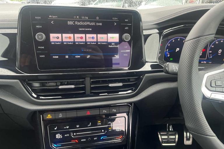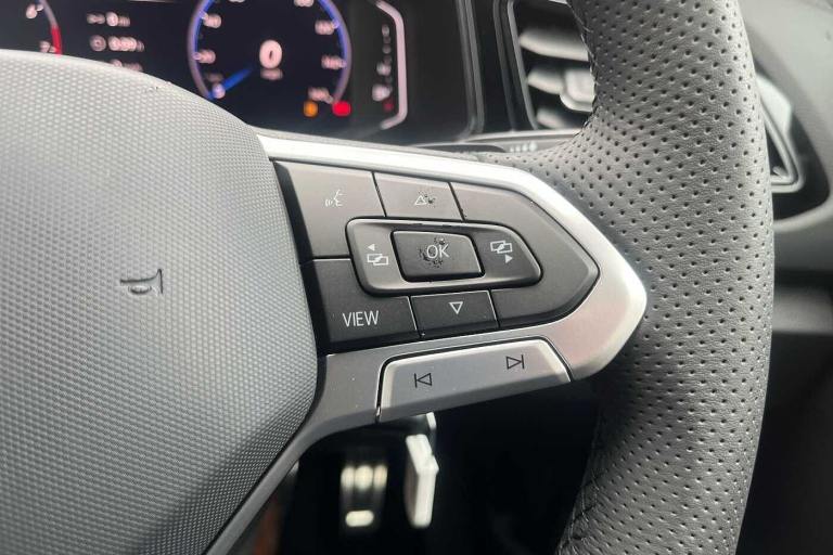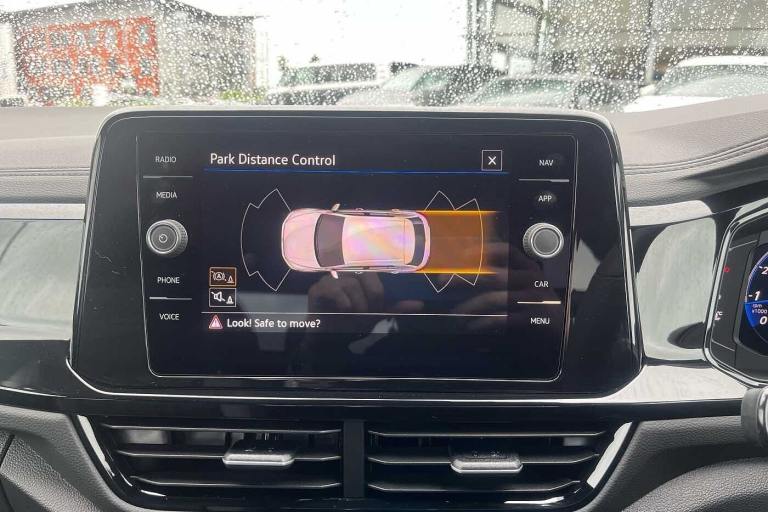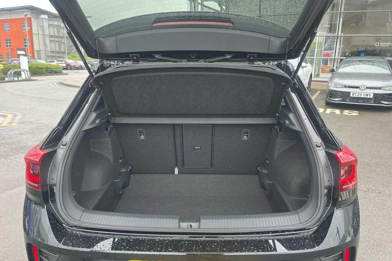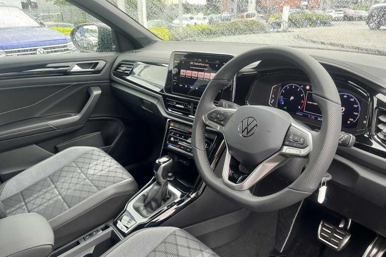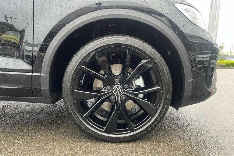 Available from 05/09/2025. Volkswagen T-Roc Hatchback 1.5 TSI Black Edition 5dr DSG in Deep black. Specification Includes Miscellaneous,Discover media navigation pro touch screen navigation with streaming /internet/DVD radio system/integrated voice activation-Car-Net guide/inform plus,Wheels,19in Misano alloy wheels with low rolling resistance and anti theft wheel bolts,Paint - Metallic,Metallic - Deep black pearl,Exterior Features,Front windscreen wiper with intermittent wipe and 4 position delay,Heated rear window,Power windows with comfort operation and circuit breaker,Rain sensor,Rear wash/wipe with intermittent wipe setting,Rear shock absorption chassis with increased ride height,Extended roof spoiler,External USB type C socket and charging sockets,Illuminated front grille,R-Line design body coloured bumpers,Rear exhaust tailpipe,Rear side wing doors,Automatic hazard lights activation under emergency braking,Automatic headlight control with LED separate daytime running lights with coming/leaving home function,Dynamic cornering light,IQ LED matrix headlights,LED 3rd brake light,LED rear number plate lights,LED rear tail lights with dynamic turn signal,Light mode for poor weather- rain- fog or snow,Rear fog light on one side and reversing lights on both sides,Safety,ABS,City emergency braking and pedestrian monitoring,Electronic parking brake,Electronic Stability Control (ESC) inc EDL (Electronic Differential Lock) and ASR (Traction Control),Front disc brakes,Hill start assist,Rear disc brakes,Volkswagen roadside assistance,Advanced driver attention and drowsiness monitor,Lane keeping system Lane Assist,Modified key software - reduce switch off time for key status change to Long no motion,Park assist including front and rear parking sensors,Power assisted speed sensitive steering,Auto dimming interior rear view mirror,Electrically adjustable and heated door mirrors,Exterior mirrors aspherical on driver side- convex on front passenger side,Remote electrically foldable door mirrors- puddle lights and reverse activated passenger's door mirror,3 point height adj front seatbelts + pretensioners,3 point seatbelts in outer rear with ECE label,Child locks on rear doors,Driver and front passenger airbag with front passenger airbag deactivation,Driver and front passenger safety-optimised head restraints,Drivers seatbelt reminder,Front and rear passengers curtain airbag system including front side airbags,Predictive pedestrian protection,Two tone horn,Tyre