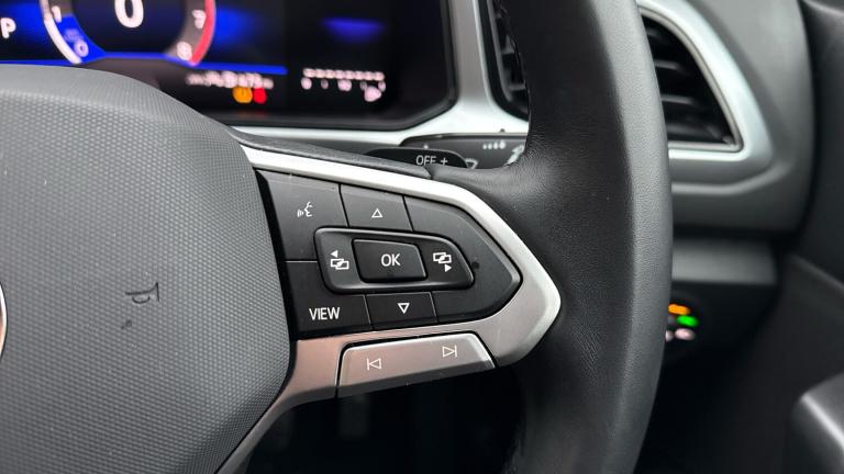 This DSG automatic petrol 150 TSi compact SUV is a one owner vehicle which has a full service history, and it is absolutely stunning finished in Pyrite Silver metallic paintwork.As standard, it comes with keyless entry, reversing camera, alloy wheels, touch screen media with Apple Car Play, Android Auto, Bluetooth and DAB radio, front and rear parking sensors, digital drivers cockpit, adaptive cruise control, lane assist, dual-zone climate control with air conditioning, auto lights and wipers, front fog lights, LED lights, electronic handbrake, LED interior lighting, roof rails, and much more.As a Volkswagen Approved used vehicle included is 1 year unlimited mileage Warranty, 1 year Roadside Assistance, independent vehicle history and mileage checks, comprehensive multi-point vehicle check, service history checks, plus 5 days complimentary Volkswagen Drive Away Insurance..Air Conditioning, Climate Control, Metallic Paint, Alloy Wheels, DAB Radio, Bluetooth, Parking Sensors, Full Service History, USB, Park Assist, Manufacturer Approved, Adaptive cruise, Keyless Entry-Push Button Start, Apple-Android Play, Rear Camera, Auto Lights, Electric Folding Mirrors, Lane Keeping Assist, Pre Crash Prevention& Rain Sensors, Black stitching for floor mats, Rain sensor, Heated rear window, Rear wash/wipe with intermittent wipe setting, Front windscreen wiper with intermittent wipe and 4 position delay, Privacy glass for rear side windows and rear window, Power windows with comfort operation and circuit breaker, ABS, Rear disc brakes, Front disc brakes, Electronic parking brake, Hill start assist, Volkswagen roadside assistance, Electronic Stability Control (ESC) inc EDL (Electronic Differential Lock) and ASR (Traction Control), City emergency braking and pedestrian monitoring, Front shock absorption