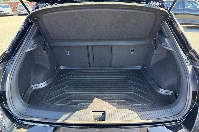 Available from 04/10/2025. Volkswagen T-Roc Hatchback 1.5 TSI R-Line 5dr in Deep Black. Specification Includes Safety,Rear view camera,Packs,Sport pack with sports suspension - T-Roc,Winter pack without heated windscreen washer jets - T-Roc,Wheels,18in Nevada black diamond turned alloy wheels with anti theft wheel bolts and low rolling resistance,Exterior Features,Front windscreen wiper with intermittent wipe and 4 position delay,Heated rear window,Power windows with comfort operation and circuit breaker,Privacy glass for rear side windows and rear window,Rain sensor,Rear wash/wipe with intermittent wipe setting,Body coloured exterior mirror housings and door handles,Extended roof spoiler,External USB type C socket and charging sockets,R-Line design body coloured bumpers,Rear exhaust tailpipe,Rear side wing doors,Automatic hazard lights activation under emergency braking,Automatic headlight control with LED separate daytime running lights with coming/leaving home function,LED 3rd brake light,LED rear combination lamps,LED rear number plate lights,Rear fog light on one side and reversing lights on both sides,Safety,ABS,City emergency braking and pedestrian monitoring,Electronic parking brake,Electronic Stability Control (ESC) inc EDL (Electronic Differential Lock) and ASR (Traction Control),Hill start assist,Rear disc brakes,Volkswagen roadside assistance,Advanced driver attention and drowsiness monitor,Lane keeping system Lane Assist,Modified key software - reduce switch off time for key status change to Long no motion,Park assist including front and rear parking sensors,Auto dimming interior rear view mirror,Electrically adjustable and heated door mirrors,Exterior mirrors aspherical on driver side- convex on front passenger side,Remote electrically foldable door mirrors- puddle lights and reverse activated passenger's door mirror,3 point height adj front seatbelts + pretensioners,3 point seatbelts in outer rear with ECE label,Child locks on rear doors,Driver and front passenger airbag with front passenger airbag deactivation,Driver and front passenger safety-optimised head restraints,Drivers seatbelt reminder,Front and rear passengers curtain airbag system including front side airbags,Predictive pedestrian protection,Two tone horn,Tyre pressure loss indicator,Interior Features,Front + rear carpet mats,Air care climatronic air conditoning system with active combination filter and 2-zone temperature control,12V power socket in centre console,4 load lashing