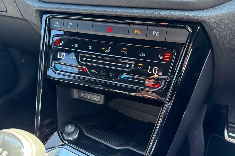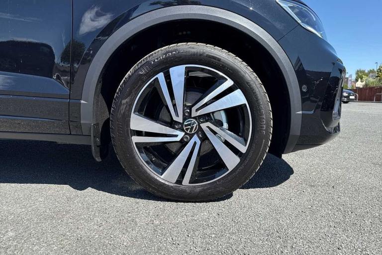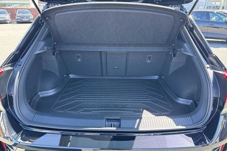 Available from 04/10/2025. Volkswagen T-Roc Hatchback 1.5 TSI R-Line 5dr in Deep Black. Specification Includes Safety,Rear view camera,Packs,Sport pack with sports suspension - T-Roc,Winter pack without heated windscreen washer jets - T-Roc,Wheels,18in Nevada black diamond turned alloy wheels with anti theft wheel bolts and low rolling resistance,Exterior Features,Front windscreen wiper with intermittent wipe and 4 position delay,Heated rear window,Power windows with comfort operation and circuit breaker,Privacy glass for rear side windows and rear window,Rain sensor,Rear wash/wipe with intermittent wipe setting,Body coloured exterior mirror housings and door handles,Extended roof spoiler,External USB type C socket and charging sockets,R-Line design body coloured bumpers,Rear exhaust tailpipe,Rear side wing doors,Automatic hazard lights activation under emergency braking,Automatic headlight control with LED separate daytime running lights with coming/leaving home function,LED 3rd brake light,LED rear combination lamps,LED rear number plate lights,Rear fog light on one side and reversing lights on both sides,Safety,ABS,City emergency braking and pedestrian monitoring,Electronic parking brake,Electronic Stability Control (ESC) inc EDL (Electronic Differential Lock) and ASR (Traction Control),Hill start assist,Rear disc brakes,Volkswagen roadside assistance,Advanced driver attention and drowsiness monitor,Lane keeping system Lane Assist,Modified key software - reduce switch off time for key status change to Long no motion,Park assist including front and rear parking sensors,Auto dimming interior rear view mirror,Electrically adjustable and heated door mirrors,Exterior mirrors aspherical on driver side- convex on front passenger side,Remote electrically foldable door mirrors- puddle lights and reverse activated passenger's door mirror,3 point height adj front seatbelts + pretensioners,3 point seatbelts in outer rear with ECE label,Child locks on rear doors,Driver and front passenger airbag with front passenger airbag deactivation,Driver and front passenger safety-optimised head restraints,Drivers seatbelt reminder,Front and rear passengers curtain airbag system including front side airbags,Predictive pedestrian protection,Two tone horn,Tyre pressure loss indicator,Interior Features,Front + rear carpet mats,Air care climatronic air conditoning system with active combination filter and 2-zone temperature control,12V power socket in centre console,4 load lashing