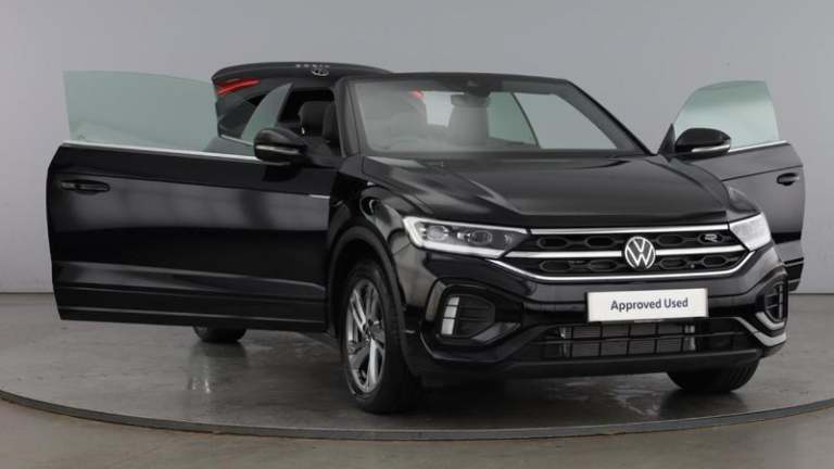 Turn every journey into an occasion with this stylish Volkswagen T-Roc Cabriolet R-Line 1.5 TSI 150PS 7-speed DSG 2 Door (ULEZ), registration KN25TZM with just 2,030 miles on the clock. With only one previous owner and full dealership Volkswagen approved service history, this T-Roc Cabriolet combines open-top driving enjoyment with everyday practicality and Volkswagen build quality. The refined 1.5 TSI engine paired with the smooth 7-speed DSG gearbox delivers a responsive yet efficient drive, perfectly suited to city streets and longer motorway trips alike.Inside, you ll find a high level of specification, including satellite navigation to keep you on the right route, heated seats and a heated steering wheel for extra comfort on colder days, and adaptive cruise control to make longer journeys more relaxing. Front and rear parking sensors help take the stress out of tight manoeuvres, while Apple CarPlay and Android Auto keep you seamlessly connected on the move.When you purchase this car from Mon Motors Volkswagen Bristol, you will enjoy all the benefits of the Volkswagen Approved Used scheme, including a minimum 12-month Warranty and 12 months Roadside Assistance. If the car is under three years old, it remains covered by Volkswagen s original 36-month manufacturer warranty, with the remaining term equal to 36 months minus the vehicle s age; vehicles over three years come with a minimum 12-month warranty. This T-Roc Cabriolet has undergone over 100 meticulous checks by our Volkswagen trained technicians and is available for immediate delivery.Buying from Mon Motors Volkswagen Bristol, an official Volkswagen franchise retailer, gives you complete peace of mind, with expert product knowledge, access to genuine Volkswagen parts, competitive finance options and a friendly, professional team dedicated to helping you find the right car and supporting you throughout your ownership. Pearl - Deep black, Windscreen wiper with intermittent wipe light, Black roof, Body colour door handles, Body colour rear boot spoiler, Chrome effect left and right trapezoid exhaust tailpipe fascia surround, Chrome trim on upper and lower radiator grille, Power operated canvas convertible top, R-Line design body coloured bumpers, Rear boot, Volkswagen roundel, Automatic hazard lights activation under emergency braking, Automatic headlight control with LED separate daytime running lights with coming/leaving home function, Dark red rear combination lamps in LED technology, Dusk