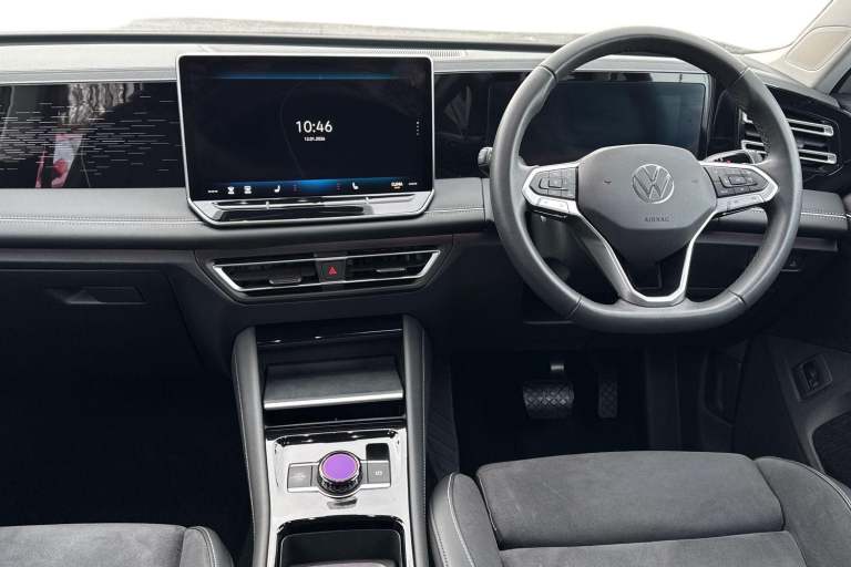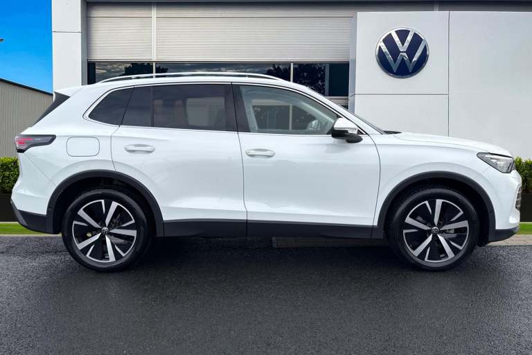 This Volkswagen Tiguan 1.5 eTSI Elegance offers the perfect balance of refined styling, advanced technology and efficient performance. Finished in classic Pure White, its complemented by striking 19"" Catania diamond-turned alloy wheels, giving the Tiguan a confident and upmarket presence on the road. Step inside and youre welcomed by a sleek Soul Black interior, designed for comfort and sophistication. The Elegance trim delivers a premium feel throughout, while the mild-hybrid 1.5 eTSI engine provides smooth power delivery, improved efficiency and seamless stop-start driving. Technology is a real highlight. The Discover Media Navigation system includes built-in navigation, wireless smartphone charging, multiple USB-C ports front and rear, and the intuitive IDA Voice Assistant for hands-free control. Connectivity and convenience are effortless, whether youre commuting or heading away for the weekend. Safety and driver assistance are exceptionally comprehensive. Equipped with the Driver Assistance Package, this Tiguan features Adaptive Cruise Control, Lane Assist, Travel Assist, Emergency Assist, and an Area View 360° camera system for confident manoeuvring. Advanced systems such as Front Assist with pedestrian and cyclist monitoring, Side Assist, Rear Traffic Alert and Front Cross Traffic Assist all work together to keep you and your passengers protected. Practical, spacious and packed with cutting-edge features, the Tiguan remains one of the most versatile SUVs in its...