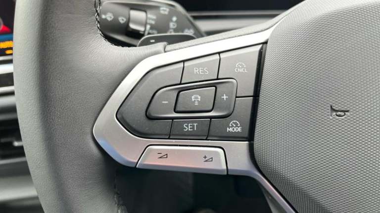 Solid paint, Laminated safety glass windshield, Cloth upholstery, Leather wrapped multifunction steering wheel with paddle shift, Tool kit and car jack, Light package - Tiguan, Winter pack - Tiguan, Special solid - Pure white, 18 Bologna alloy wheels with black diamond turned surface and anti theft wheel bolts, Heat insulating glass in side and rear windows, Heat insulating windshield, Heated rear window, Rain sensor windscreen wipers, Rear wiper, Body coloured bumpers and air intake with chrome trim, Body coloured door handles, Illuminated door handle recesses, Rear side wing doors, Automatic headlight control system, Coming/leaving home lighting function, High level 3rd brake light, Illuminated lightline between headlamps, Rear fog light on one side, reversing light on both sides, Electronic parking brake with auto hold, Front disc brakes, Rear disc brakes, Adaptive cruise control (ACC), Lane change system, Side assist, Rear traffic alert and Exit warning system, Park assistance plus with front and rear parking sensors, Power assisted steering with speed sensitive, Auto dimming interior rear view mirror, Body-coloured exterior mirror housings, Puddle lights and reverse activated passengers door mirror, 3 point seat belt for centre rear seats, 3 Point seat belts in front with pretensioners, 3 point seatbelts in outer rear with ECE label, Driver and front passenger airbag with front passenger airbag deactivation, Front and rear curtain airbags, Front and rear side airbags, Front