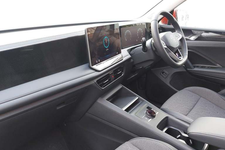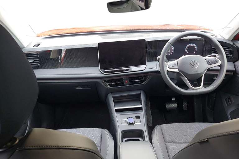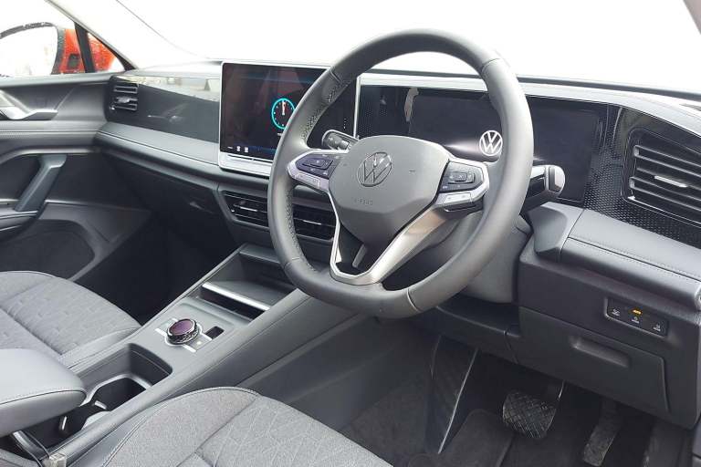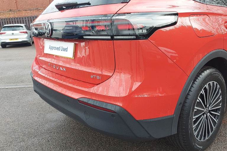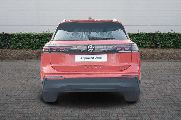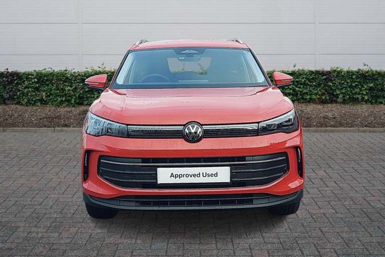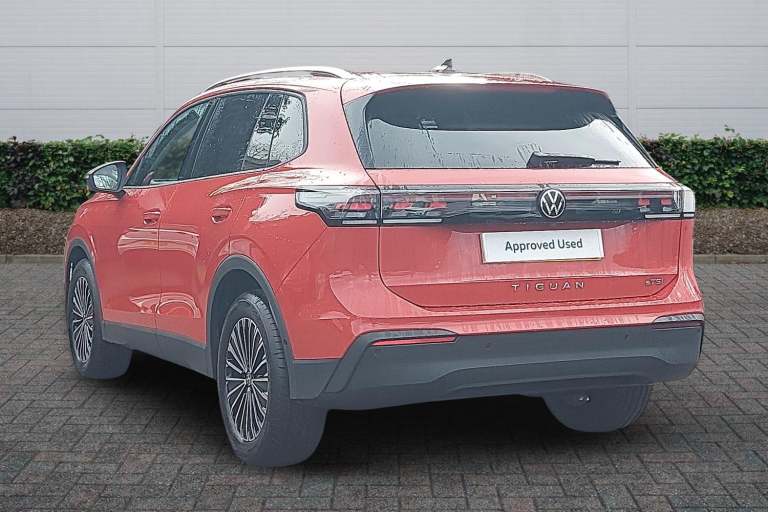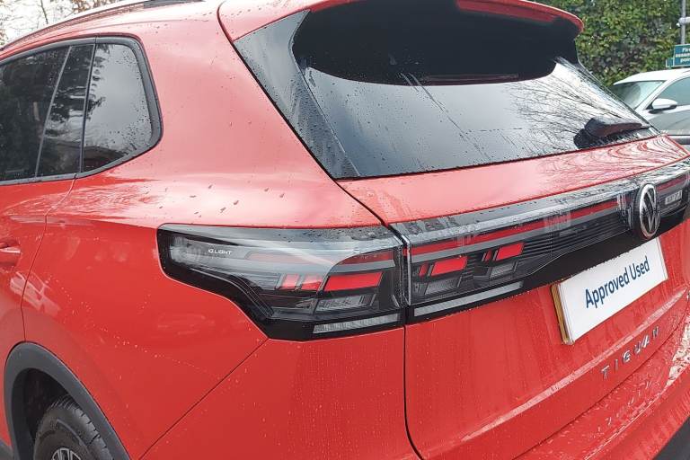Available from 31/03/2026. Volkswagen Tiguan Estate 1.5 eTSI 150 Match 5dr DSG in Persimmon Red. Specification Includes Exterior Features,Metallic paint,Safety,Multifunction front facing camera,Rear view camera,Remote electrically foldable door mirrors,Interior Features,Cloth upholstery,Leather wrapped multifunction steering wheel with paddle shift,Paint - Metallic,Metallic - Persimmon red,Trim - Cloth,Cloth - Grey melange soul,Wheels,18in Napoli alloy wheels with anti theft wheel bolts,Exterior Features,Heat insulating glass in side and rear windows,Heat insulating windshield,Heated rear window,Rain sensor windscreen wipers,Rear wiper,Front wheel drive,Body coloured bumpers and air intake with chrome trim,Body coloured door handles,Illuminated door handle recesses,Rear side wing doors,Automatic headlight control system,Coming/leaving home lighting function,High level 3rd brake light,Illuminated lightline between headlamps,Rear fog light on one side- reversing light on both sides,Safety,Electronic parking brake with auto hold,Front disc brakes,Hill start assist,Rear disc brakes,Adaptive cruise control (ACC),Advanced driver attention and drowsiness monitor,Dynamic road sign display,Front Assist - Autonomous emergency braking with pedestrian and cyclist monitoring,Lane change system- Side assist- Rear traffic alert and Exit warning system,Lane keeping system Lane Assist,Oncoming vehicle braking when turning including swerve support,Park assistance plus with front and rear parking sensors,Power assisted steering with speed sensitive,Auto dimming interior rear view mirror,Body-coloured exterior mirror housings,Puddle lights and reverse activated passengers door mirror,3 point seat belt for centre rear seats,3 Point seat belts in front with pretensioners,3 point seatbelts in outer rear with ECE label,Driver and front passenger airbag with front passenger airbag deactivation,Front and rear curtain airbags,Front and rear side airbags,Front centre airbag,Manual child proof rear door locks,Two tone horn,Warning triangle,Interior Features,Carpet mats- front and rear,Air care climatronic 3 zone air conditioning system with rear air conditioning control panel,12V outlet in center console rear and in luggage compartment,12V socket in centre console,Ceramique headlining,Door and side trim panel in foam film and woven fabric,Front centre armrest,Variable luggage compartment floor,Sun visors with illuminated vanity mirrors,Audio / Communications,Bluetooth mobile phone