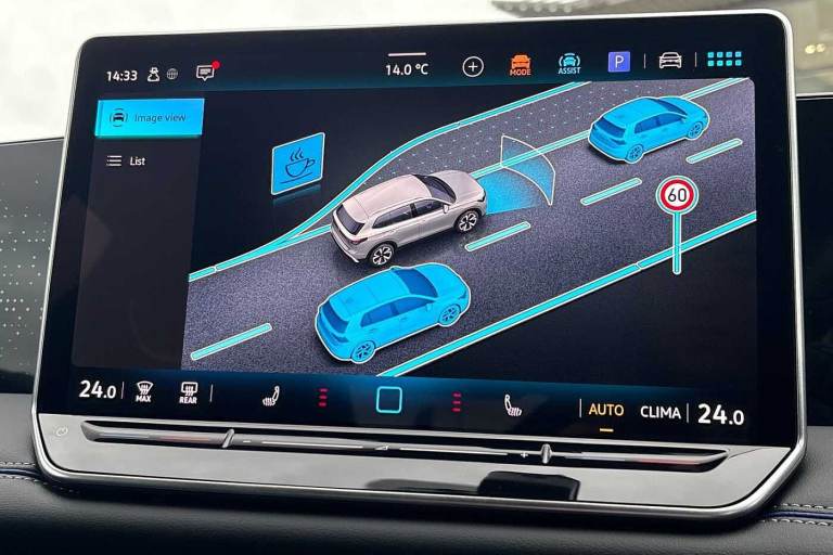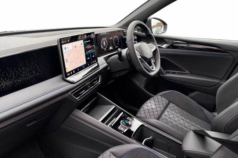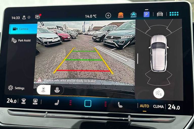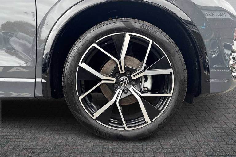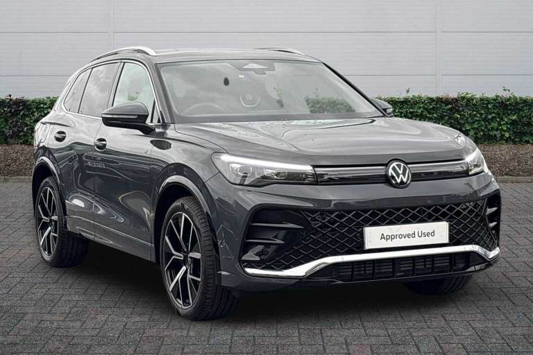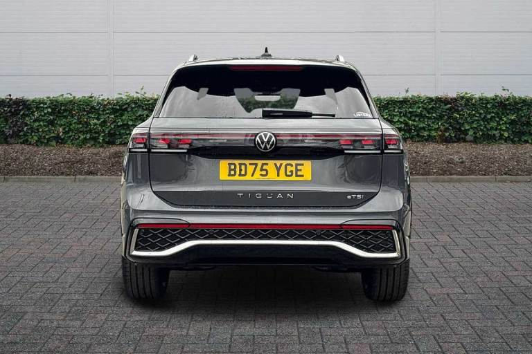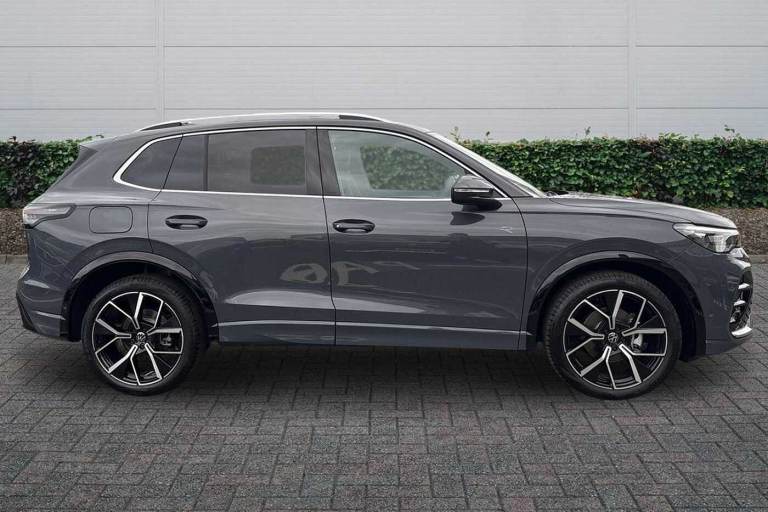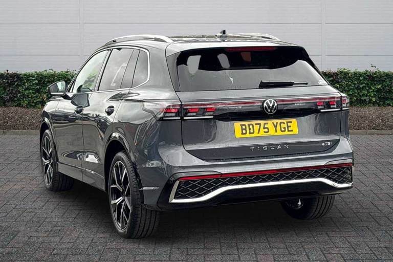 Available from 03/02/2026. Volkswagen Tiguan Estate 1.5 eTSI 150 R-Line 5dr DSG in Dolphin Grey. Specification Includes Exterior Features,Metallic paint,Safety,Rear view camera,Interior Features,Tool kit and car jack,Packs,Winter pack - Tiguan,Paint - Metallic,Metallic - Dolphin grey,Wheels,20in York alloy wheels with Black/grey diamond turned surface and anti theft wheel bolts,Steel space saver spare wheel including tool kit and jack,Exterior Features,Heat insulating glass in side and rear windows,Heated rear window,Heated windscreen washer jets,Laminated safety glass windshield,Rain sensor windscreen wipers,Rear wiper,Front wheel drive,Air intake with Chrome trim,Body coloured door handles,Chrome moldings on the side windows,Illuminated door handle recesses,Rear side wing doors,Ambient lighting with logo projection,Automatic headlight control system,Coming/leaving home lighting function,High level 3rd brake light,Illuminated lightline between headlamps,LED Day time running light,Rear fog light on one side- reversing light on both sides,Safety,Electronic parking brake with auto hold,Front disc brakes,Rear disc brakes,Adaptive cruise control (ACC),Advanced driver attention and drowsiness monitor,Dynamic road sign display,Front Assist - Autonomous emergency braking with pedestrian and cyclist monitoring,Lane change system- Side assist- Rear traffic alert and Exit warning system,Lane keeping system Lane Assist,Oncoming vehicle braking when turning including swerve support,Park assistance plus with front and rear parking sensors,Power assisted steering with speed sensitive,Auto dimming interior rear view mirror,Puddle lights and reverse activated passengers door mirror,3 point seat belt for centre rear seats,3 Point seat belts in front with pretensioners,3 point seatbelts in outer rear with ECE label,Driver and front passenger airbag with front passenger airbag deactivation,Front and rear curtain airbags,Front and rear side airbags,Front centre airbag,Manual child proof rear door locks,Two tone horn,Warning triangle,Interior Features,Carpet mats- front and rear,Air care climatronic 3 zone air conditioning system with rear air conditioning control panel,12V outlet in center console rear and in luggage compartment,12V socket in centre console,Black roof lining,Brushed stainless steel pedals,Centre console with illuminated storage compartment with sliding cover and two drinks holders,Chrome elements on the mirror switch and power window switches and door