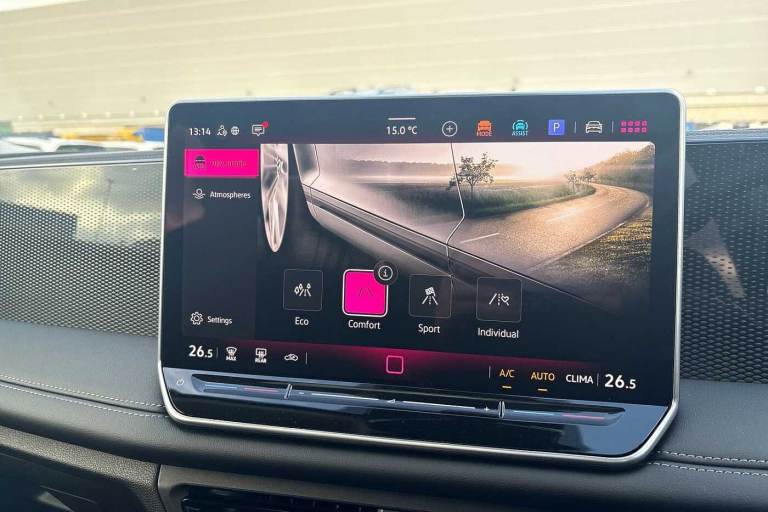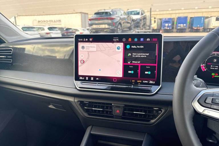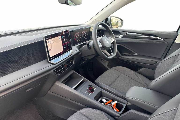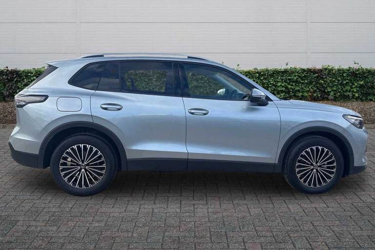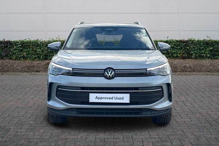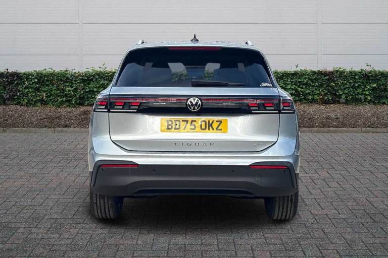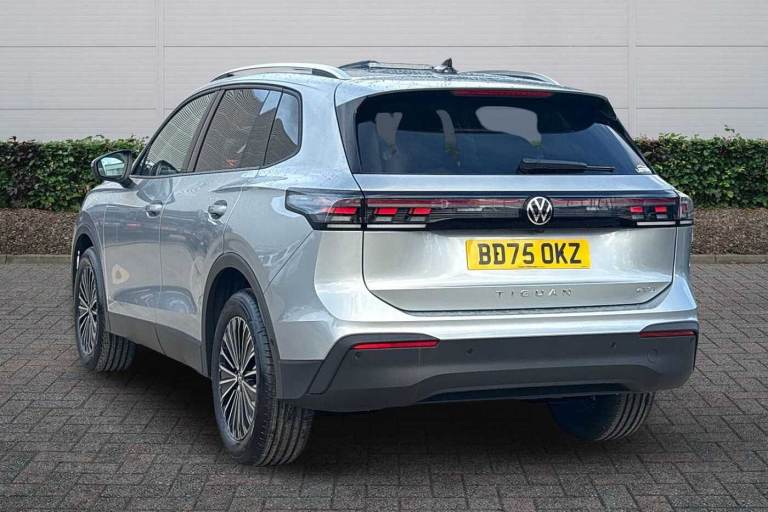 Available from 31/03/2026. Volkswagen Tiguan Estate 1.5 eTSI Match 5dr DSG in Oyster Silver. Specification Includes Exterior Features,Metallic paint,Tilting and sliding panoramic sunroof with rear panoramic sunroof,Safety,Rear view camera,Interior Features,Cloth upholstery,Packs,Light package - Tiguan,Paint - Metallic,Metallic - Oyster silver,Wheels,18in Napoli alloy wheels with anti theft wheel bolts,Exterior Features,Heat insulating glass in side and rear windows,Heat insulating windshield,Heated rear window,Rain sensor windscreen wipers,Rear wiper,Front wheel drive,Body coloured bumpers and air intake with chrome trim,Body coloured door handles,Illuminated door handle recesses,Rear side wing doors,Automatic headlight control system,Coming/leaving home lighting function,High level 3rd brake light,Illuminated lightline between headlamps,Rear fog light on one side- reversing light on both sides,Safety,Electronic parking brake with auto hold,Front disc brakes,Hill start assist,Rear disc brakes,Adaptive cruise control (ACC),Advanced driver attention and drowsiness monitor,Dynamic road sign display,Front Assist - Autonomous emergency braking with pedestrian and cyclist monitoring,Lane change system- Side assist- Rear traffic alert and Exit warning system,Lane keeping system Lane Assist,Oncoming vehicle braking when turning including swerve support,Park assistance plus with front and rear parking sensors,Power assisted steering with speed sensitive,Auto dimming interior rear view mirror,Body-coloured exterior mirror housings,Puddle lights and reverse activated passengers door mirror,3 point seat belt for centre rear seats,3 Point seat belts in front with pretensioners,3 point seatbelts in outer rear with ECE label,Driver and front passenger airbag with front passenger airbag deactivation,Front and rear curtain airbags,Front and rear side airbags,Front centre airbag,Manual child proof rear door locks,Two tone horn,Warning triangle,Interior Features,Carpet mats- front and rear,Air care climatronic 3 zone air conditioning system with rear air conditioning control panel,12V outlet in center console rear and in luggage compartment,12V socket in centre console,Ceramique headlining,Door and side trim panel in foam film and woven fabric,Front centre armrest,Variable luggage compartment floor,Sun visors with illuminated vanity mirrors,Audio / Communications,Bluetooth mobile phone interface,E-Sim card for online connectivity,Wireless App-Connect,Digital radio reception