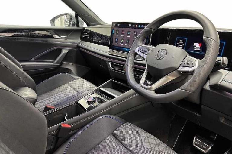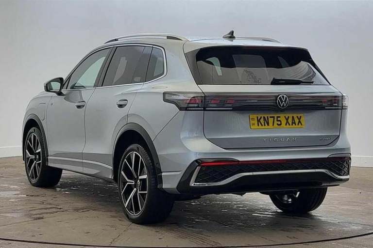 Discover the perfect blend of performance, efficiency and premium R-Line styling with this Volkswagen Tiguan 1.5 TSI 272 eHybrid R-Line DSG (ULEZ), registration KN75XAX. With just 2,545 miles, this exceptional example has been a Mon Motors demo and has had one previous owner, giving you the reassurance of careful use and meticulous preparation.Equipped to impress, it features striking 20 alloy wheels alongside intuitive satellite navigation, adaptive cruise control and a rear-view camera for added confidence on every journey. Inside, you ll enjoy the comfort of heated seats and a heated steering wheel, plus seamless connectivity via Bluetooth, Apple CarPlay and Android Auto, keeping you connected, entertained and in control wherever you travel.Purchase from Mon Motors Volkswagen Gloucester and you ll enjoy all the benefits of the Volkswagen Approved Used scheme, including a minimum 12-month Warranty and 12 months Roadside Assistance. If the vehicle is under three years old, it will also be covered by Volkswagen s original 36-month manufacturer warranty, with the remaining term calculated as 36 months minus the vehicle s age. This Tiguan has passed over 100 meticulous checks by our Volkswagen-trained technicians and is available for immediate delivery.As an official Volkswagen franchise retailer, Mon Motors Volkswagen Gloucester offers manufacturer-trained expertise, transparent vehicle history, and a professional handover experience designed around you. From tailored finance and part-exchange options to ongoing support from our aftersales team, you can buy with complete confidence, knowing your next car is backed by Volkswagen standards from start to finish. Rear window wiper, DAB radio, Air conditioning, Bluetooth, Brake assistant, Cruise control, Rain sensor, Active brake assist, Adaptive cruise control, 2x Front airbags (driver + passenger), 5 seats, Ambient lighting, Centre arm rest, Divided back seats, ISOFIX Child seat fastener, Leather, Sport seat, Right-hand drive, Delivery from 16.12.2025, 5 doors, Heated front window, Speed limit: 134 mph, Heat insulating glass in side and rear windows, Heated rear window, Laminated safety glass windshield, Rain sensor windscreen wipers, Rear wiper, Adaptive chassis control DCC pro includes driving mode selection, Air intake with Chrome trim, Body coloured door handles, Illuminated door handle recesses, Rear side wing doors, Automatic headlight control system, Coming/leaving home lighting function, High