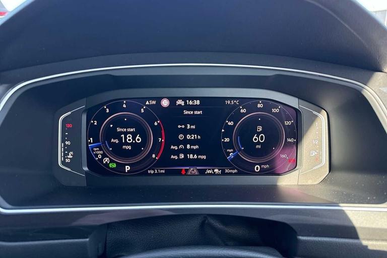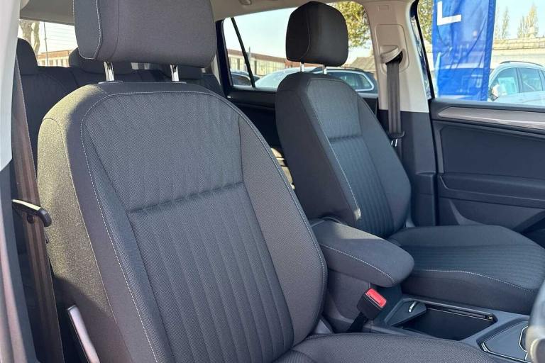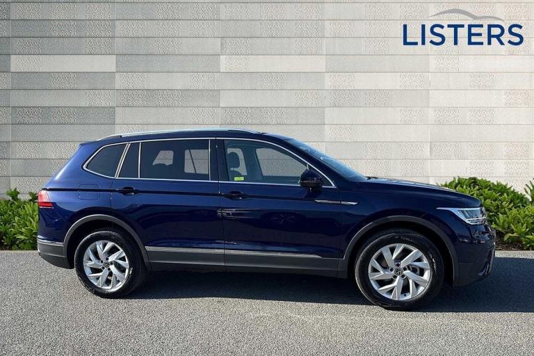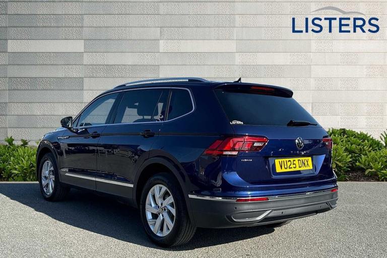 Available from 11/07/2025. Volkswagen Tiguan Allspace Estate 1.5 TSI Life 5dr DSG in Atlantic Blue. Specification Includes Wheels,18in frankfurt alloy wheels with Airstop rolling resistance tyres,Exterior Features,Privacy glass,Rain sensor,Rear wiper,Front wheel drive,Body coloured bumpers,Chrome mouldings on side window,Exterior badge deletion,Rear side wing doors,Silver roof rails,Automatic headlight control system,Coming/leaving home lighting function,Headlight range control,LED headlamps,LED separate daytime running light,Rear combination lamps,Rear fog light,Third brake light,Safety,ABS+EBD+Brake assist,Electronic parking brake,Electronic Stability Control (ESC) inc EDL (Electronic Differential Lock) and ASR (Traction Control),Rear disc brakes,Adaptive cruise control radar sensor controlled distance monitoring system,Advanced driver attention and drowsiness monitor,Dynamic road sign display,Lane keeping system Lane Assist,Multifunction front facing camera,Power assisted speed sensitive steering,Auto dimming interior rear view mirror,Exterior mirror housings painted in silver,3 point seat belt for centre rear seat,3 rear three point seatbelts,Driver and front passenger safety-optimised head restraints,Driver's and front passenger's airbag with front passenger's airbag deactivation switch,Height adjustable front 3 point seatbelts + pretensioners,Manual rear child locks,Pedestrian monitoring,Two tone horn,Warning buzzer for seatbelts if unfastened,Interior Features,Front + rear carpet mats,Air Care Climatronic 3 zone automatic climate control with enhanced air filter and controls in the rear,12-volt outlet in centre console rear and luggage compartment,12V socket in centre console,Front centre armrest,Leather gearshift handle,Multifunction steering wheel,Front footwell illumination,LED interior light with switch off delay/dimmer and 2 front/rear LED reading lights,Sun visors with illuminated vanity mirrors,Audio / Communications,App-Connect,Mobile phone interface comfort with inductive charging feature,2 USB-C ports in the front- 1 USB-C charging socket on the center console in the rear,8 speakers,DAB Digital radio,Diversity antenna for FM reception,Driver Convenience,Electric boot lid,Miscellaneous,Digital cockpit pro,eCall emergency call service,Speedo and rev counter- electronic odometer- trip- service interval display and exterior temperature gauge,Start-stop system with battery regeneration (recuperation - energy recovery during