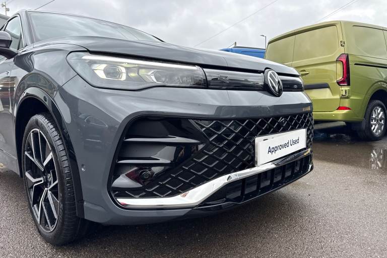 Now available at Wrexham Volkswagen is this Volkswagen Tiguan R-Line. Powering this Tiguan is a 2.0 TDI 150PS engine with automatic transmission. The exterior is finished in the Dolphin Grey paintwork, which is complimented by the 20in Leeds alloy wheels to the side. Illuminating the roads are the IQ.LIGHT HD Matrix headlamps that provide safety in low light conditions. To the side, the rear tinted windows provide passenger privacy. Assisting with maneuvering are the front and rear parking sensors and area view cameras. Moving inside, the stylish cloth seating ensures comfort on every journey. In the rear seating area youll find a folding centre armrest with cupholders, vent controls for temperature control, and two USB ports for device charging. Occupants can enjoy the openable panoramic sunroof which is perfect in the warmer climates. The cabin features a pair of heated seats with massage function, wireless smartphone charger, various storage compartments, multifunction steering wheel and 15in touchscreen display. From this display you can access the climate controls alongside features such as navigation, FM/DAB radio, bluetooth connectivity for hands-free phone use and media streaming, and Apple Carplay/AndroidAuto. For more information regarding our flexible finance options or a personalised video, contact our sales team now. This car comes fully prepared to the Volkswagen Approved Used programme, with over £2,000 of additional customer benefits including minimum 12...