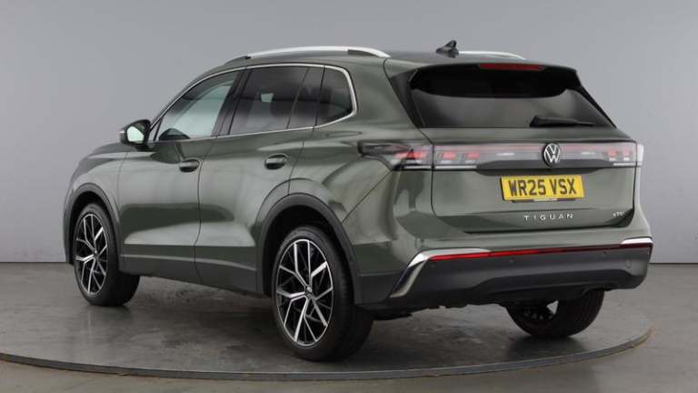 WR25VSX Volkswagen Tiguan Elegance 1.5 eTSI 150PS 7-Speed DSG, 5 Door, ULEZ compliant, with just 9,963 miles. Formerly our Mon Motors demonstrator and with one previous owner, this Tiguan presents in superb condition and benefits from full dealership Volkswagen Approved service history, most recently an oil change service carried out at 9,963 miles. The refined 1.5 eTSI mild-hybrid petrol engine pairs seamlessly with the smooth DSG gearbox for effortless, efficient motoring.Elegance specification brings impressive technology and comfort, including 20 alloy wheels, satellite navigation, Area View and rear-view camera, head-up display, adaptive cruise control, and front and rear parking sensors to make every journey easier and safer. Cabin quality is first-class, with the elevated driving position and thoughtful ergonomics the Tiguan is known for.When you purchase this car from Mon Motors Volkswagen Weston-Super-Mare, you ll receive all the benefits of the Volkswagen Approved Used scheme, including a 12-month Warranty and 12 months Breakdown Cover for added peace of mind. This vehicle has passed over 100 exacting checks by our Volkswagen-trained technicians to meet Volkswagen Approved Used Standards and is available for immediate delivery.Buy with confidence from Mon Motors Volkswagen Weston-Super-Mare, an official Volkswagen franchise retailer. You ll enjoy expert product guidance from our dedicated Volkswagen team, transparent pricing, access to Volkswagen approved finance options, and competitive part-exchange valuations. We prepare every car using genuine Volkswagen parts, offer personalised handovers, and provide ongoing aftersales support to keep your Tiguan performing at its best. Test drives are welcome and we can arrange swift collection to suit your schedule. Infotainment package plus - Tiguan, Metallic - Cipressino green, Art velours cloth - Mistral Soul, 20 Cannes alloy wheels with black diamond turned surface, Heat insulating glass in side and rear windows, Heated rear window, Laminated safety glass from B-pillar backwards 90% tinted, Laminated safety glass windshield, Rain sensor windscreen wipers, Rear wiper, Air intake with Chrome trim, Body colored bumpers in R-Line style, Body coloured door handles, Chrome moldings on the side windows, Illuminated door handle recesses, Rear side wing doors, Silver roof rails, Automatic headlight control system, Coming/leaving home lighting function, High level 3rd brake light, Illuminated lightline