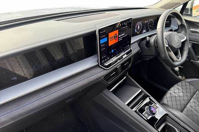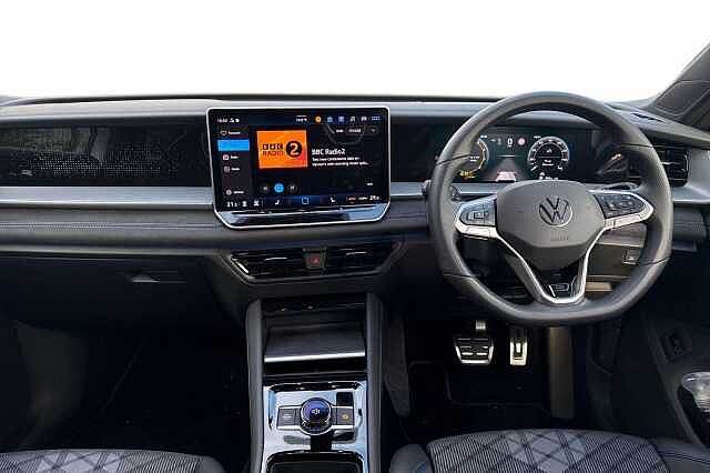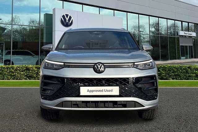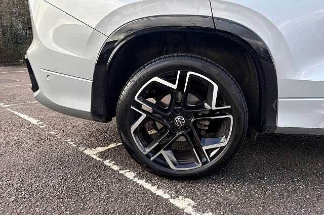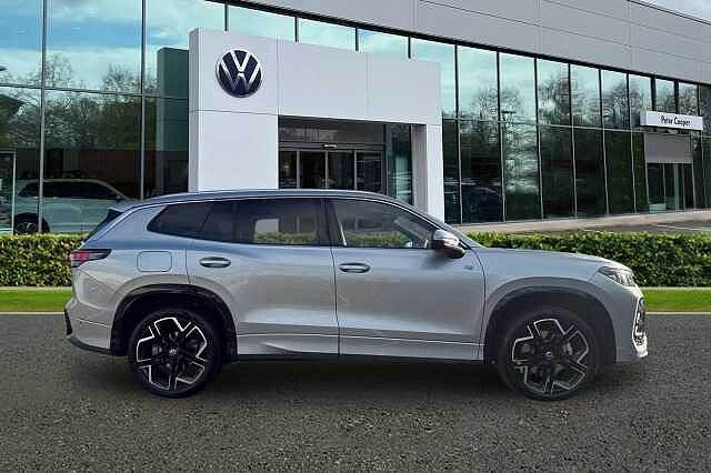Rear window wiper, Navigation system, DAB radio, Brake assistant, Cruise control, Hill holder, Parking assist system: passive, Rain sensor, Aluminium wheels, Third seat row, Active brake assist, Adaptive cruise control, 2x Front airbags (driver + passenger), Emergency call system, Front wheel drive, 7 seats, Ambient lighting, Centre arm rest, Divided back seats, ISOFIX Child seat fastener, Sport seat, Right-hand drive, Delivery from 04.12.2025, 5 doors, Speed limit: 129 mph Packs, Black style package with 20"" York black alloy wheels - Tayron, Comfort package with park assist pro - Tayron Exterior Features, Heat insulating glass in side and rear windows, Laminated safety glass winshield, heat insulating, Rain sensor windscreen wipers, Rear wiper, Front wheel drive, Air intake with Chrome trim, Body colour door handles, Chrome moldings on the side windows, Rear side wing doors, Volkswagen logo in front, illuminated lighting animation with wake up/goodbye scenario and illuminated door handles, Automatic headlight control system, Coming/leaving home lighting function, Dynamic headlight range control with dynamic cornering light, Illuminated Volkswagen logo rear with animation, LED 3rd brake light, LED separate signature day time running light, Puddle lights, Rear fog light on one side, reversing light on both sides, Surround lighting with welcome light, Safety, Autonomous emergency braking front assist with pedestrian and cyclist monitoring, Electronic parking brake with auto hold, Front disc brakes, Hill start assist, Rear disc brakes, Adaptive cruise control (ACC), Driver alert system, Driver attention monitoring system, Dynamic road sign display, Lane change system, Side assist, Rear traffic alert and Exit warning system, Multifunction front facing camera, Oncoming vehicle braking when turning including swerve support, Auto dimming interior rear view mirror, Exterior mirrors convex on the left and aspherical on the right, Reverse activated passenger's door mirror, 3 Point seat belts in front with pretensioners, 3 point seatbelts in outer rear with ECE label, Driver and front passenger airbag with front passenger airbag deactivation, First aid kit with warning triangle and safety vest, Front and rear curtain airbags, Front and rear side airbags, Front centre airbag, Two tone horn, Interior Features, Carpet mats, front and rear, 12V outlet in center console rear and in luggage compartment, Black roof lining, Brushed stainless steel pedals, Centre console with illuminated storage compartment with sliding cover and two drinks holders, Chrome elements on the mirror switch and power window switches and door pulls, Door and side trim panel insert in Art velour, Flat luggage compartment floor, Front centre armrest, Front scuff plates in alumium, 10 colour interior ambient lighting, Sun visors with illuminated vanity mirrors, Audio / Communications, E-Sim card for online connectivity, eCall emergency call system, Voice activation spoken voice commands for telephone and navigation system, Wireless App-Connect, Digital radio reception (DAB), Diversity antenna for FM reception, Driver Convenience, Start/stop system with regenerative braking, Miscellaneous, Digital Cockpit Pro - 10.25"" high resolution dash display screen with customisable menus and information, Warning signal and warning light for front and rear seatbelts not fastened, Trim, Decorative material set R-Line, Interior door handle in matte chrome, 3 rear headrests, 3 rear seat bench in 2nd row, backrest split folding with centre armrest and 2 seats in 3rd row of seats, ISOFIX anchors for child seats on outer rear seats and front passenger seat compatible with i-Size, Mechanical rear seat release, Power adjustable lumbar support in front, Single front passenger seat, Sports comfort seats in front