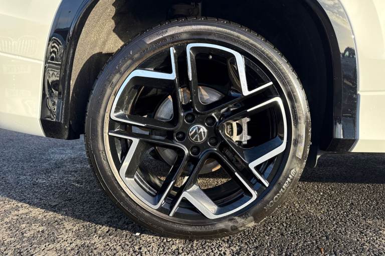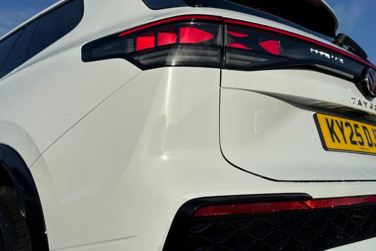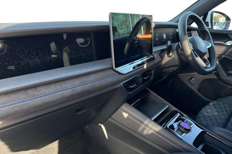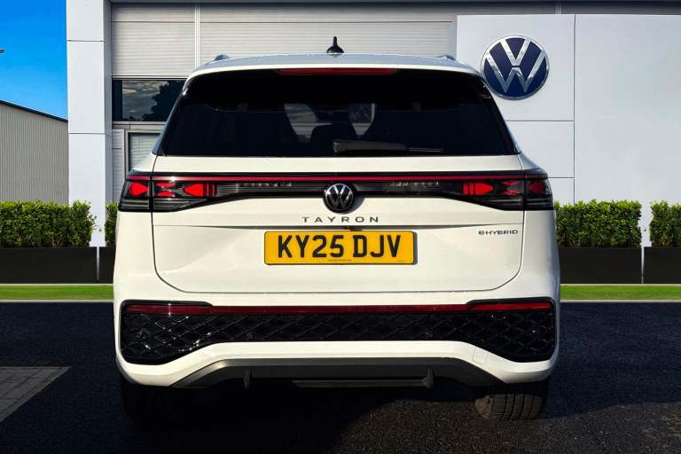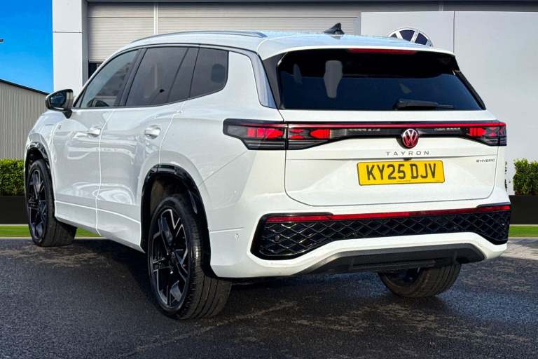 Meet the Volkswagen Tayron 1.5 TSI eHybrid R-Line a bold, plug-in hybrid SUV that combines striking R-Line styling with advanced technology, electrified efficiency and outstanding everyday practicality. Finished in crisp Pure White, this Tayron looks clean, modern and purposeful, perfectly complemented by its athletic proportions and confident road presence. The exterior is elevated further by the 20-inch York diamond-turned alloy wheels in black, filling the arches beautifully and underlining the R-Lines sporty character. A tilting and sliding panoramic sunroof, including a rear panoramic section, floods the cabin with natural light, while the stunning IQ.LIGHT HD Matrix headlights deliver exceptional visibility. With high-resolution matrix beams, digital projection, poor-weather lighting and LED rear lights with dynamic indicators, the Tayron looks just as impressive at night as it does during the day. Inside, the cabin is finished in an elegant Soul Black interior with premium materials throughout, creating a refined yet sporty environment. Comfort is a standout feature, thanks to the Winter Pack, which includes heated front and rear seats, a heated, leather-wrapped multifunction sports steering wheel, and even a heated front windscreen for added convenience on colder mornings. Technology is front and centre, led by the impressive 15-inch infotainment display with built-in navigation, wireless smartphone charging and multiple high-power USB-C ports front and rear....
