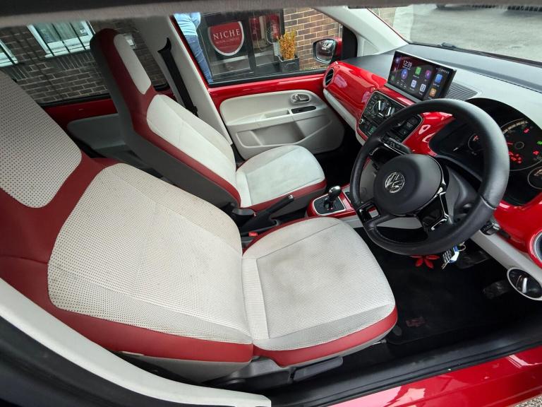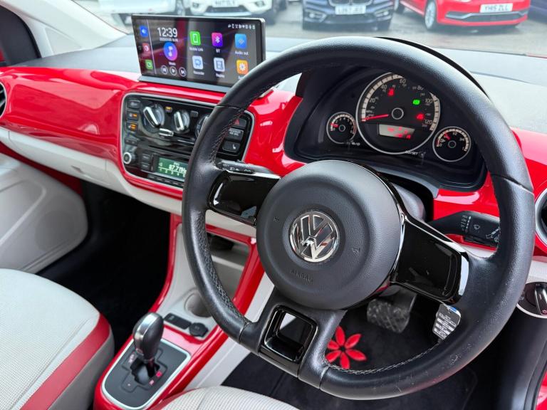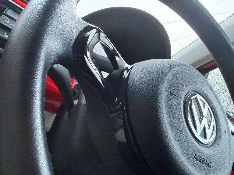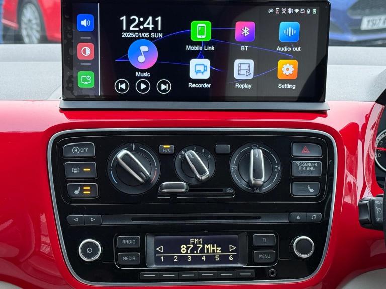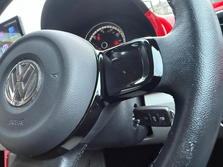 THIS IS A ONE-OWNER FRESH VEHICLE THAT WILL COME WITH A FULL SERVICE AT POINT OF SALE ALONG WITH A CURRENT MOT TILL 07/12/2026 AND SPARE KEY IS PRESENT APPLE CARPLAY FUNCTION ANDROID STEREO SYSTEM WITH APPLE CARPLAY FUNCTION AND BLUETOOTH PLUS MANY MORE FUNCTIONS REVERSE CAMERA ALLOY WHEELS FRONT FOGS HEATED FRONT SEATS REAR PARKING SENSORS AIR CON/CLIMATE CONTROL ELECTRIC WINDOWS ELECTRIC MIRRORS HEATED DOOR MIRRORS CD PLAYER CRUISE CONTROL HALF LEATHER INTERIOR TRIP COMPUTER 12V SOCKET FULLY COLOUR CODED VEHICLE HEATED FRONT SCREEN HEATED REAR SCREEN PLUS MUCH MORE, PLEASE CONFIRM SPECIFICATIONAuthorized and Regulated By The Financial Conduct Authority Approved Dealer for CAR FINANCE 247, MOTO NOVO & FIRST RESPONSE FINANCE Zero Deposit Finance Available All Cars HPI Clear with Verified Mileage FREE 3 Months Nationwide WARRANTY DELIVERY Service Available Reserve Any Car with a £100 Refundable Holding Deposit Free Complimentary Collection from Local Airport and Train Stations Available Card Payments Accepted Open 7 Days Visit [Website URL removed] for our complete stock listThis 2015 Volkswagen up! High up! presents an exceptional opportunity with its remarkably low mileage of just 30,373 miles. This Euro 6 compliant 1.0 litre petrol model boasts a stylish exterior enhanced by headlights with chrome detailing. Inside, you'll appreciate the comfort of a leather trimmed gear knob and the advanced Think Blue Trainer, which offers driver tips and journey analysis to help you drive more efficiently. For your safety, it is equipped with front head airbags and benefits from central locking with two remote keys for added convenience.