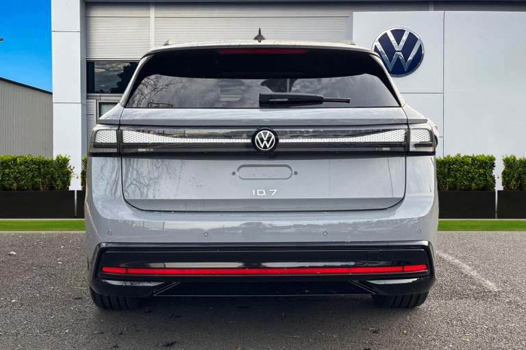 Introducing the all-new Volkswagen ID.7 Pro Match Plus Tourer a sleek, electrified estate that redefines long-distance comfort and intelligent mobility. Finished in Moonstone Grey Black solid paint, this Tourer blends understated elegance with futuristic flair, making it the perfect companion for drivers who demand style, space, and cutting-edge tech. Powered by a 77kWh battery and delivering 210kW of smooth, silent performance, the ID.7 Tourer offers impressive range and effortless acceleration. Whether youre commuting, road-tripping, or cruising through the countryside, its adaptive chassis control (DCC), progressive steering, and rear shock absorption ensure a drive thats both refined and responsive. The Exterior Pack Plus adds serious visual impact with illuminated VW emblems front and rear, a Lightline between the headlamps, and glowing door handle recesses. IQ.LIGHT LED Matrix headlights with dynamic cornering and poor weather mode light the way with precision, while the electric tailgate offer convenience. The panoramic glass sunroof with electronic darkening brings the sky into your cabin or keeps it out when you need shade. Inside, the Soul Black cabin is a sanctuary of comfort and innovation. The Interior Pack features Art Velours microfleece seats with Artex bolsters, power-adjustable front seats with memory and massage functions, and ambient lighting with 30 colour options to set the mood. Storage nets and a luggage net keep things organised, while the le...