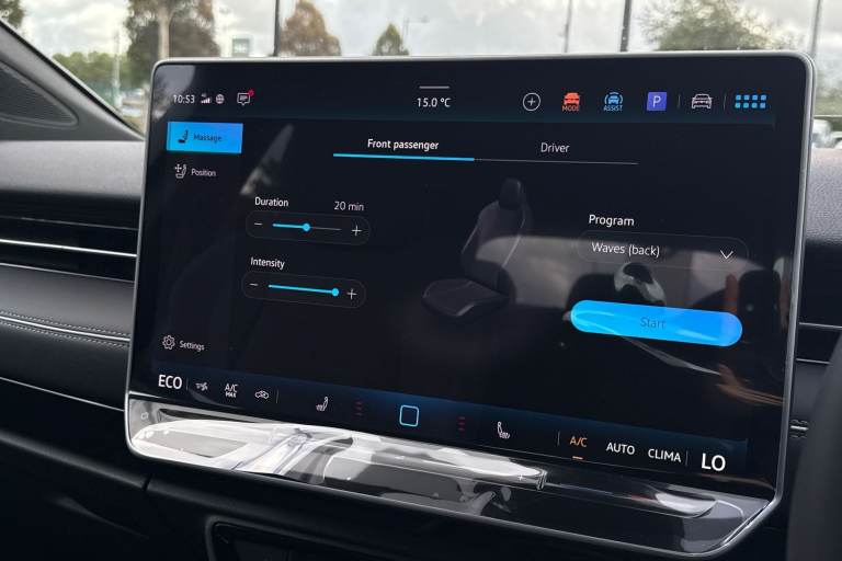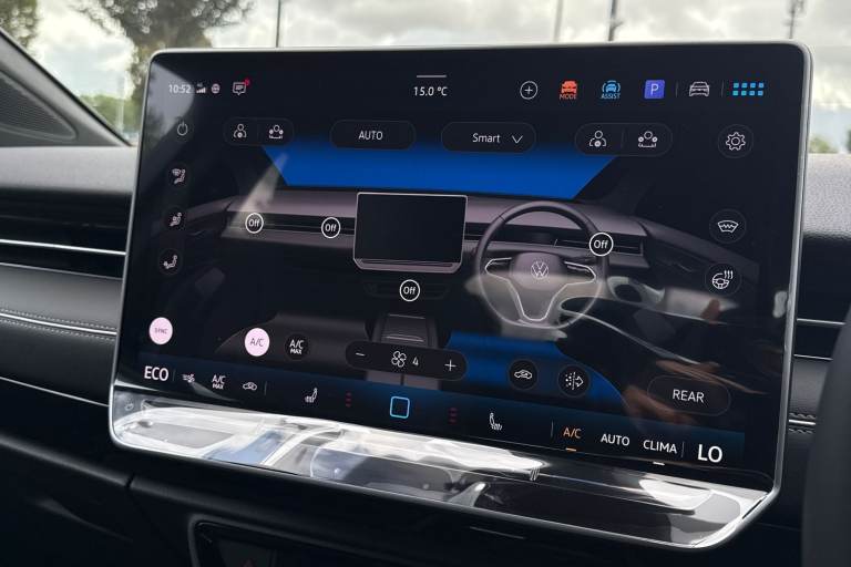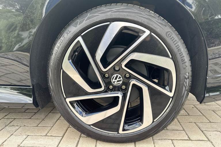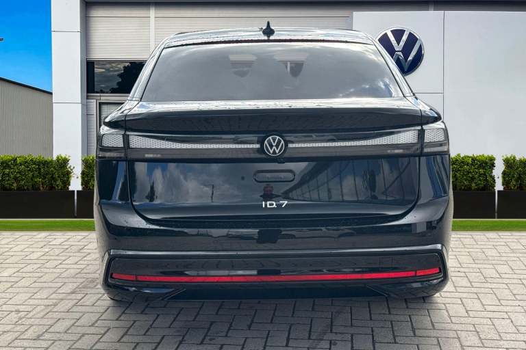 Experience the future of electric mobility with the Volkswagen ID.7 Pro Match, a sleek and sophisticated all-electric saloon that blends cutting-edge innovation with premium comfort. Finished in Grenadilla Black Metallic, this ID.7 makes a bold statement with its sculpted lines and elegant presence, enhanced by striking 20"" Montreal alloy wheels in black diamond-turned finish and AirStop® tyres for optimal efficiency and grip. Step inside to a refined cabin dressed in Soul Black with a contrasting Ceramique roof lining, creating a serene and modern atmosphere. The Interior Pack brings luxury to the forefront, featuring Art Velours microfleece seats, massage function for the front seats, power-adjustable lumbar support, and memory settings for both front seats. Ambient lighting with 30 colour options and ID.Light adds a personalised touch to every journey. The Exterior Pack ensures youre seen in style, with IQ.LIGHT LED matrix headlights, dynamic cornering lights, and illuminated front and rear emblems. Privacy glass, dynamic turn signals, and an electric tailgate round out the premium exterior features. Comfort is uncompromised thanks to the Comfort Pack, which includes Air Care Climatronic 3-zone climate control, a heated leatherette-wrapped multifunction steering wheel, and the advanced Discover Pro Navigation System. Whether commuting or cruising, the ID.7 keeps you connected and in control. Safety and driver assistance are top-tier with the Assistance Pack, offerin...