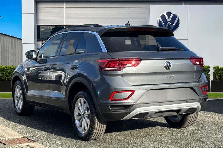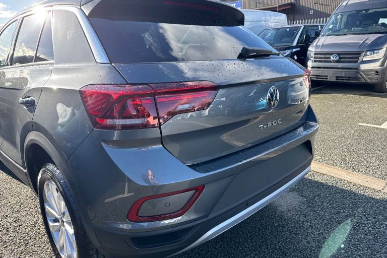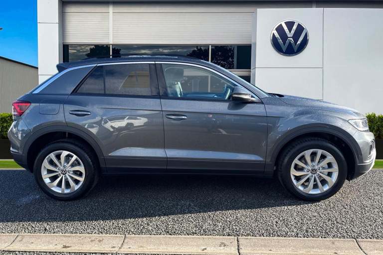Vehicle price shown includes a VWFS deposit contribution of £2500 when purchased on PCP (Personal Contract Plan). 7.9% APR Representative. Available when purchased on finance by 31/03/2026. Terms and Conditions apply - please call for more info Presenting the brand new Volkswagen T-Roc Match that is available to purchase at Wrexham Volkswagen. This T-Roc is powered by a 1.5 TSI 150PS engine with manual transmission. The exterior is finished in an Indium Grey paintwork, which is complimented by the 17in Johannesburg alloy wheels to the side. The Match trim comes with a range of features as standard such as the LED headlights that keep the roads well lit, the rear tinted windows for passenger privacy, a set of roof rails, keyless entry and starting for quick accessibility, and parking sensors that assist with maneuvering alongside the rear view camera. Moving inside, youll find the interior to be fitted with cloth seating. The rear seating area features a folding armrest with cupholders, vent controls and USB ports. The cabin features a pair of front seats with manual adjustment, climate controls, wireless smartphone charger, multifunction steering wheel and touchscreen display. From this display you can access features such as FM/DAB radio, bluetooth connectivity for hands-free phone use and media streaming, and Apple Carplay/AndroidAuto that allows you to mirror your devices applications such as navigation and music streaming. This car comes with a 3 years Manufact...