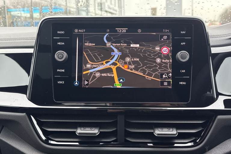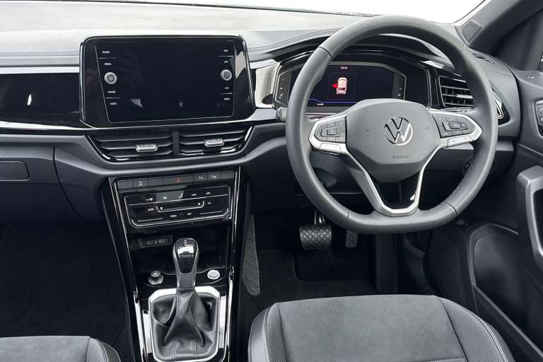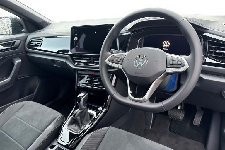 Bold in design and impressive in specification, this Volkswagen T-Roc 1.5 TSI Style Design is a standout compact SUV that blends sporty performance, premium features and everyday practicality. With its powerful yet efficient engine and striking two-tone styling, its an ideal choice for drivers who want something a little more special. Finished in eye-catching Petrol Blue Metallic with contrasting Black roof, this T-Roc makes a strong visual statement. The look is elevated further by the Black Design Pack, featuring black roof rails, privacy glass, black exterior accents and carbon-look C-pillar detailing. Sitting proudly on 19 Misano black diamond-turned alloy wheels, it has a confident, athletic stance, while IQ.LIGHT Matrix LED headlights with dynamic indicators and illuminated grille ensure outstanding presence day and night. Inside, the cabin feels modern, refined and driver-focused. The interior is finished in Titanium Black and Anthracite, complemented by a black roof lining, chrome detailing and Lava Stone Black decorative inserts. The large panoramic sunroof floods the interior with natural light, enhancing the sense of space for both front and rear passengers. Technology is a key highlight. The Discover Media navigation system offers streaming, internet services and online connectivity via the built-in eSIM, supported by a clear and responsive display. A rear-view camera makes parking effortless, while ambient lighting and premium interior finishes create a welc...