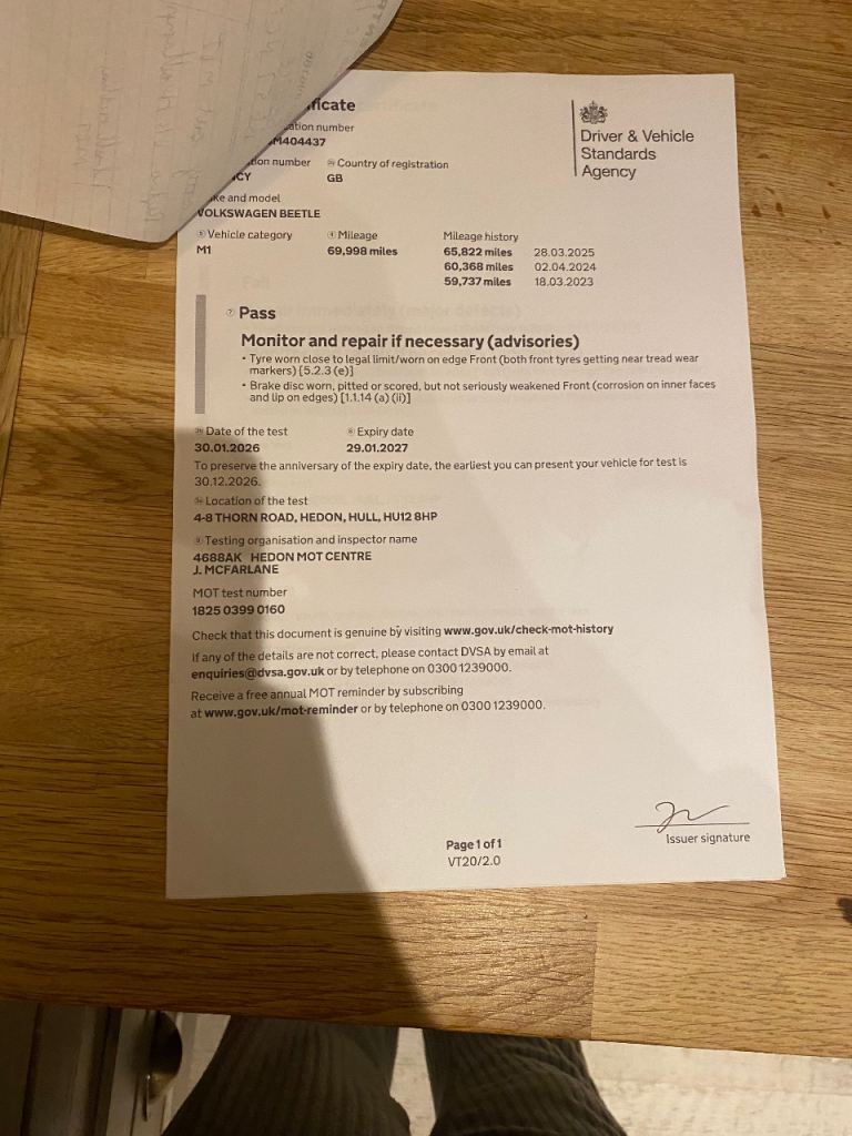 JUST PASSED MOT and had the recommended works done (see pics) so is good for a whole year.