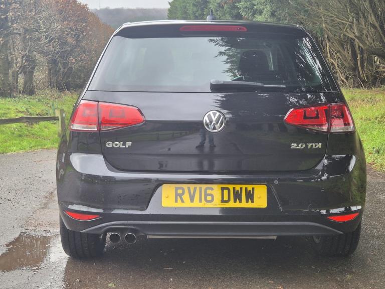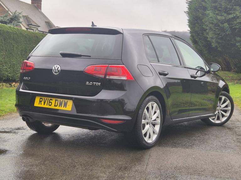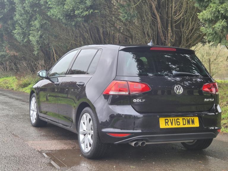 2016 Volkswagen Golf GT 2.0 TDI DSG, finished in black with Titan Black Alcantara sports seats and 76,200 miles. Specification highlights include adaptive cruise control, front and rear parking sensors, privacy glass, leather-stitched multifunction steering wheel with paddle shift gear change, unmarked alloy wheels, power folding and heated door mirrors, touchscreen European satellite navigation, DAB digital radio, Bluetooth audio streaming and phone connectivity. This example benefits from an excellent service history, including timing belt replacement and recent brakes all round, and has clearly been very well cared for mechanically. and cosmetically. Supplied with 2 keys and MOT through to January 2027.