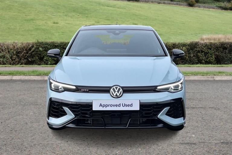 Lloyd West Cumbria Volkswagen are delighted to present our stunning Golf 2.0 TSI 300 GTI Clubsport 5Dr DSG Hatchback. Finished in Crystal Ice Blue metallic paint, a thrilling blend of everyday usability and motorsport-inspired excitement, delivering 300PS through a lightning-fast DSG gearbox for effortless pace and precision. Inside, the leather-wrapped, heated, multi-function sports steering wheel with touch control and shift paddles puts total command at your fingertips, while the Winter Pack adds welcome comfort on colder days. Advanced technology defines the cabin, with Navigation, IDA voice assistance with ChatGPT, the Light & Sight Pack, Park Assist Pro, and the Technology Package Park & Comfort Pro all working seamlessly alongside Adaptive Cruise Control to make every journey relaxed and intuitive. The GTI Performance Package sharpens the driving experience, while the R Performance Akrapovic exhaust system delivers an unmistakably rich and emotional soundtrack. Visually, the Exterior Styling Package Black Style adds a menacing edge with Matrix LED headlights, darkened lights, black mirror caps, and black detailing across the grille and headlights. The Harman Kardon sound system fills the cabin with crystal-clear audio, complemented by a tilting and sliding panoramic sunroof, illuminated lighting animation, and rear tinted glass, creating a cockpit that feels both premium and purpose built. With 33 retailers across the north of England and the Scottish borders, you can collect your used car from any Lloyd Motor Group retailer!